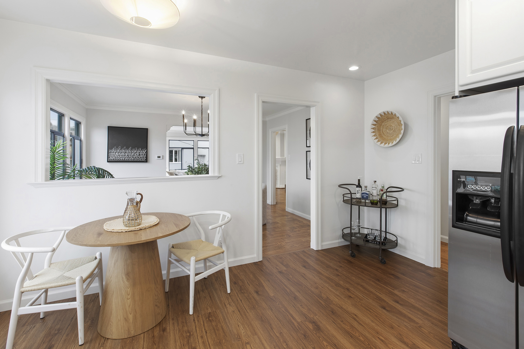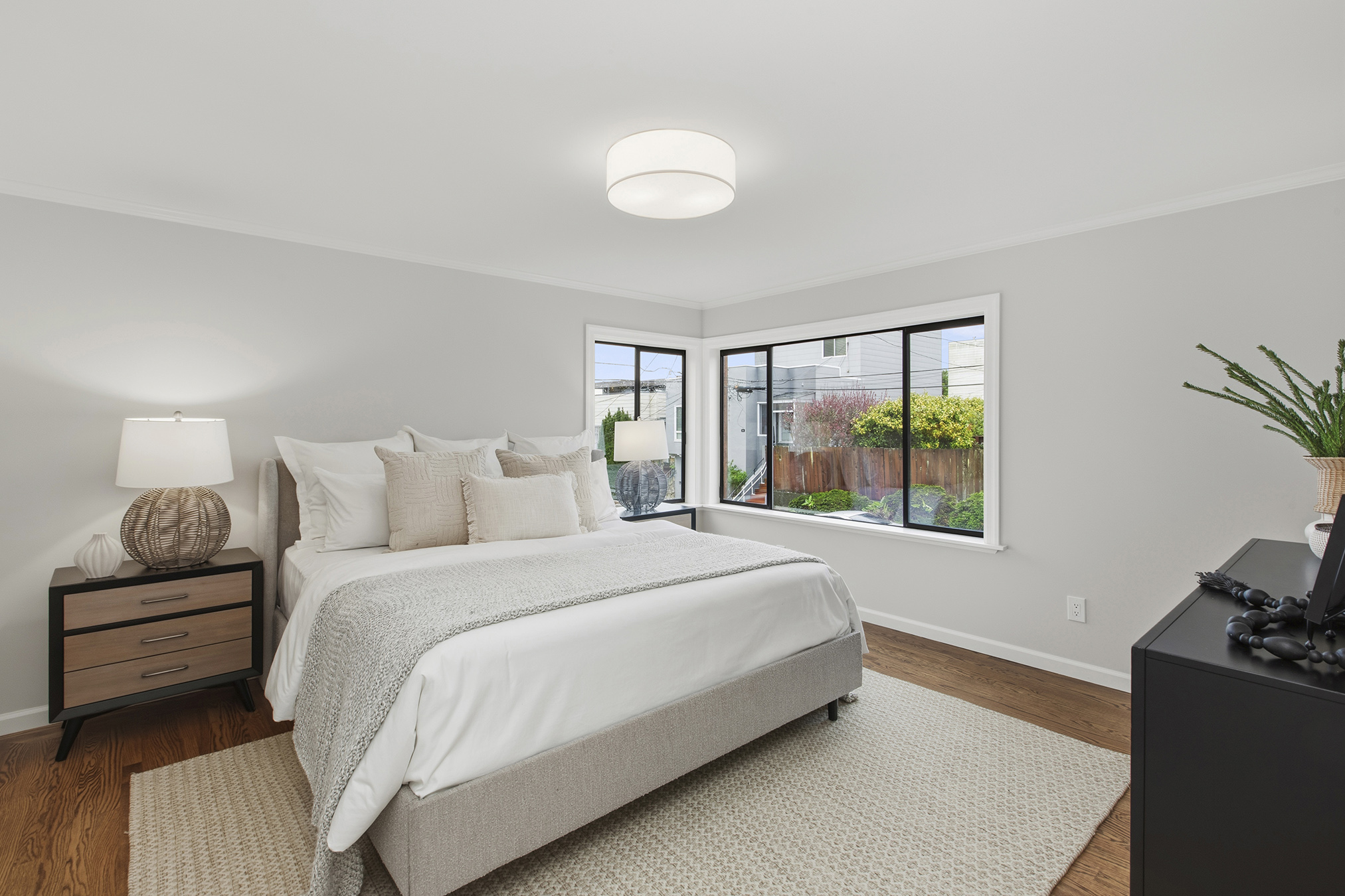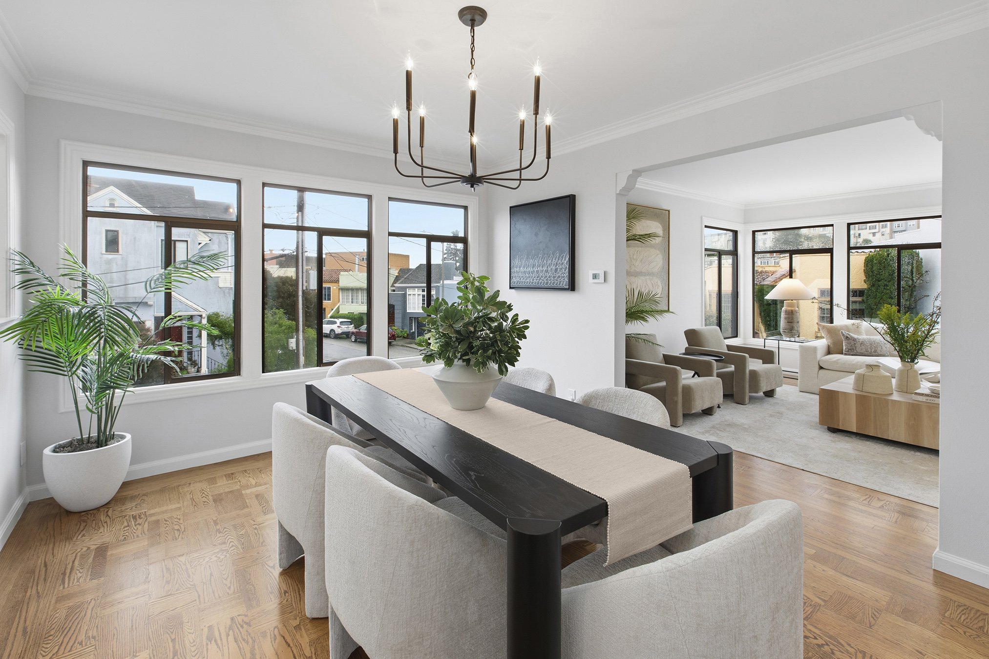 Spectacular, spacious, and semi-detached three-bedroom, two-bath meticulously maintained home showcasing a corner lot, stirring views, modern accents, and set in an ideal Miraloma Park location! The main level opens to a coveted open floor plan featuring a large living room with fireplace, inviting dining area, and an updated gourmet eat-in kitchen all with gorgeous wood floors and a wall of windows with cascading natural light. There are two bedrooms that both overlook the garden/patio/backyard and a full bathroom on this level. The conveniently located hallway leads to the comfortable lower level of the home with a large bedroom, entertainment room with wet-bar, a full bathroom, laundry room, wood floors, separate access, all graced with plenty of natural light and done with permits. The tranquil yard space with mature landscaping offers the perfect setting for peaceful repose, entertainment, or a gardener’s paradise. A large garage with plenty of room for storage completes this special home that is close to shopping, restaurants, cafes, public transportation, HWY 101/280 and more!