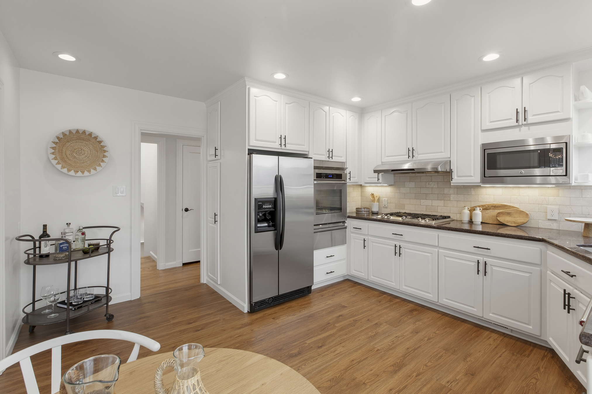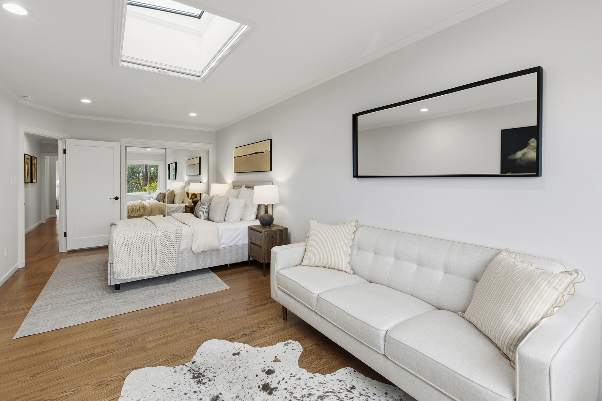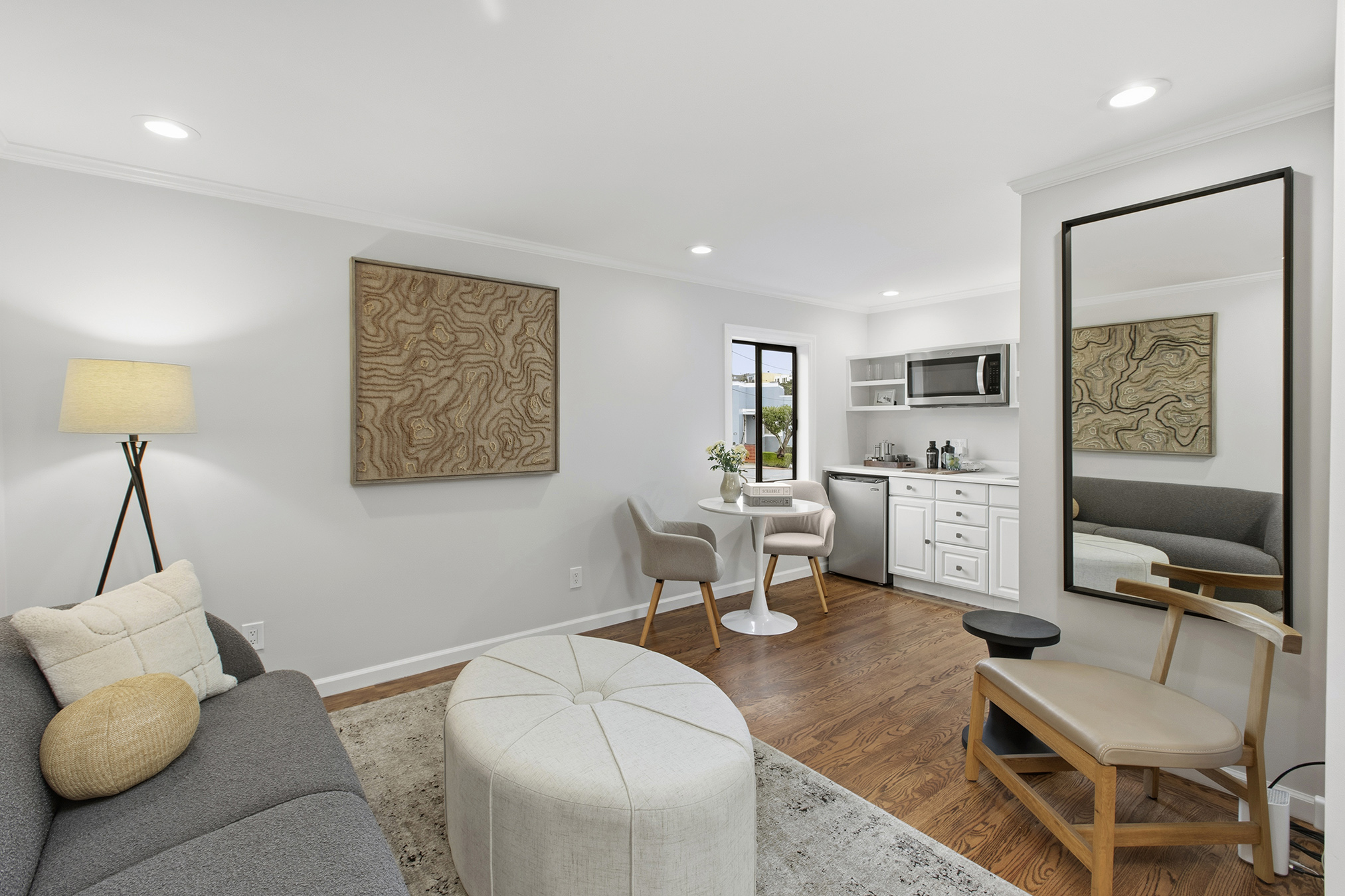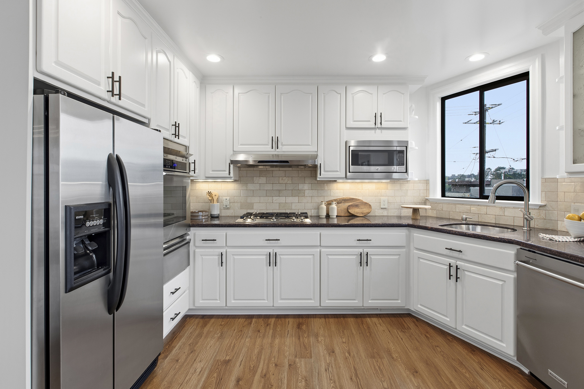 Spectacular, spacious, and semi-detached three-bedroom, two-bath meticulously maintained home showcasing a corner lot, stirring views, modern accents, and set in an ideal Miraloma Park location! The main level opens to a coveted open floor plan featuring a large living room with fireplace, inviting dining area, and an updated gourmet eat-in kitchen all with gorgeous wood floors and a wall of windows with cascading natural light. There are two bedrooms that both overlook the garden/patio/backyard and a full bathroom on this level. The conveniently located hallway leads to the comfortable lower level of the home with a large bedroom, entertainment room with wet-bar, a full bathroom, laundry room, wood floors, separate access, all graced with plenty of natural light and done with permits. The tranquil yard space with mature landscaping offers the perfect setting for peaceful repose, entertainment, or a gardener’s paradise. A large garage with plenty of room for storage completes this special home that is close to shopping, restaurants, cafes, public transportation, HWY 101/280 and more!