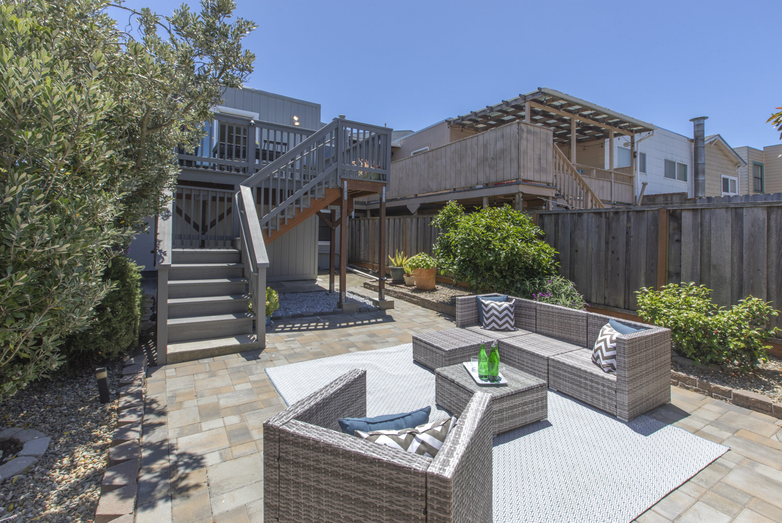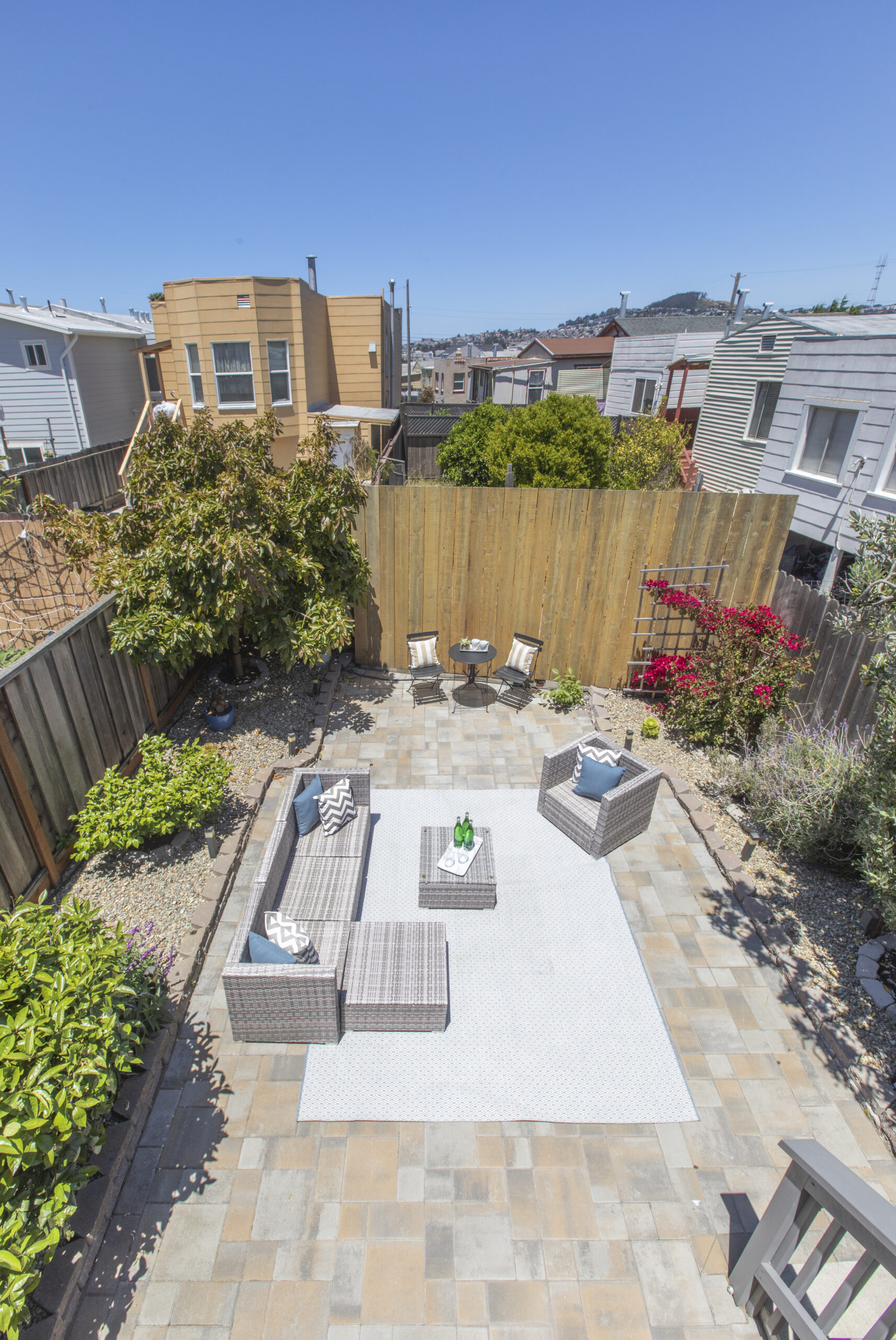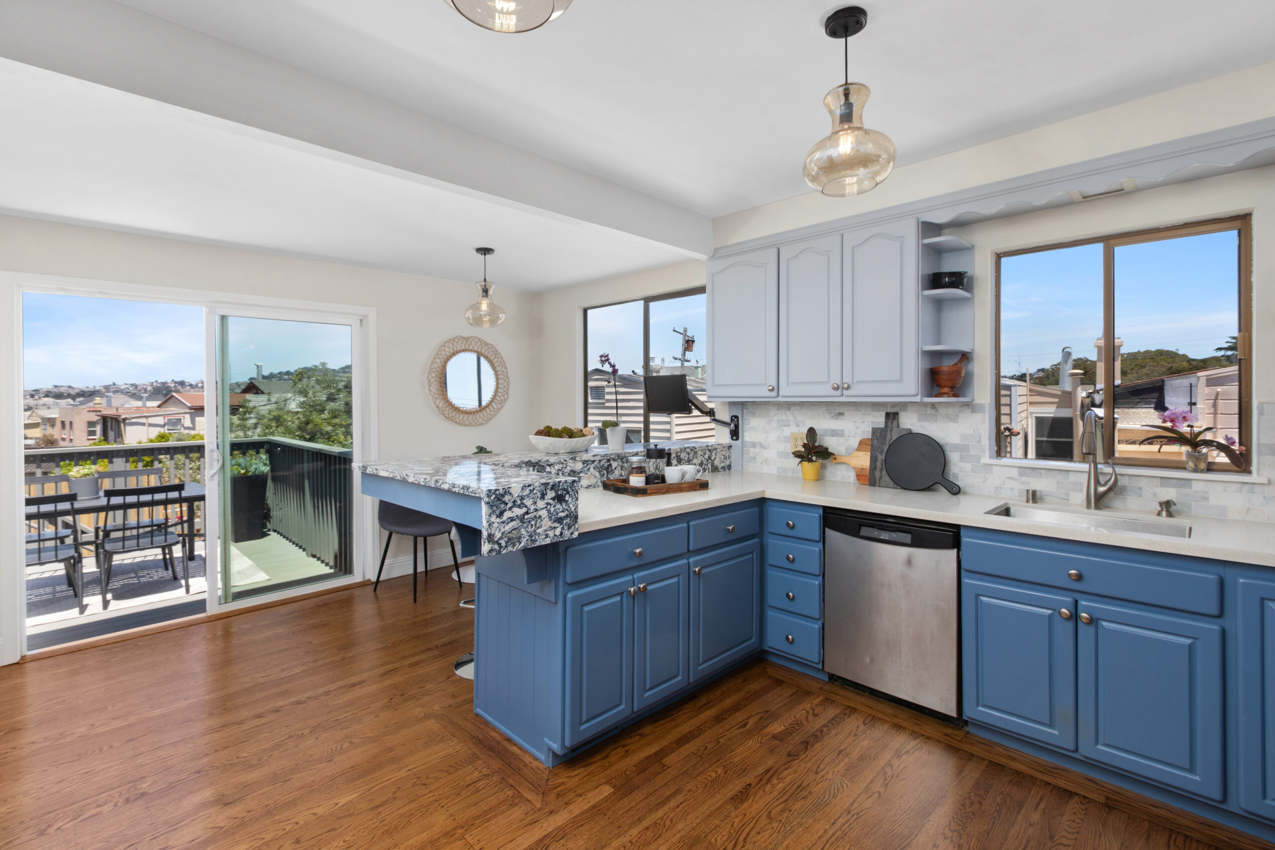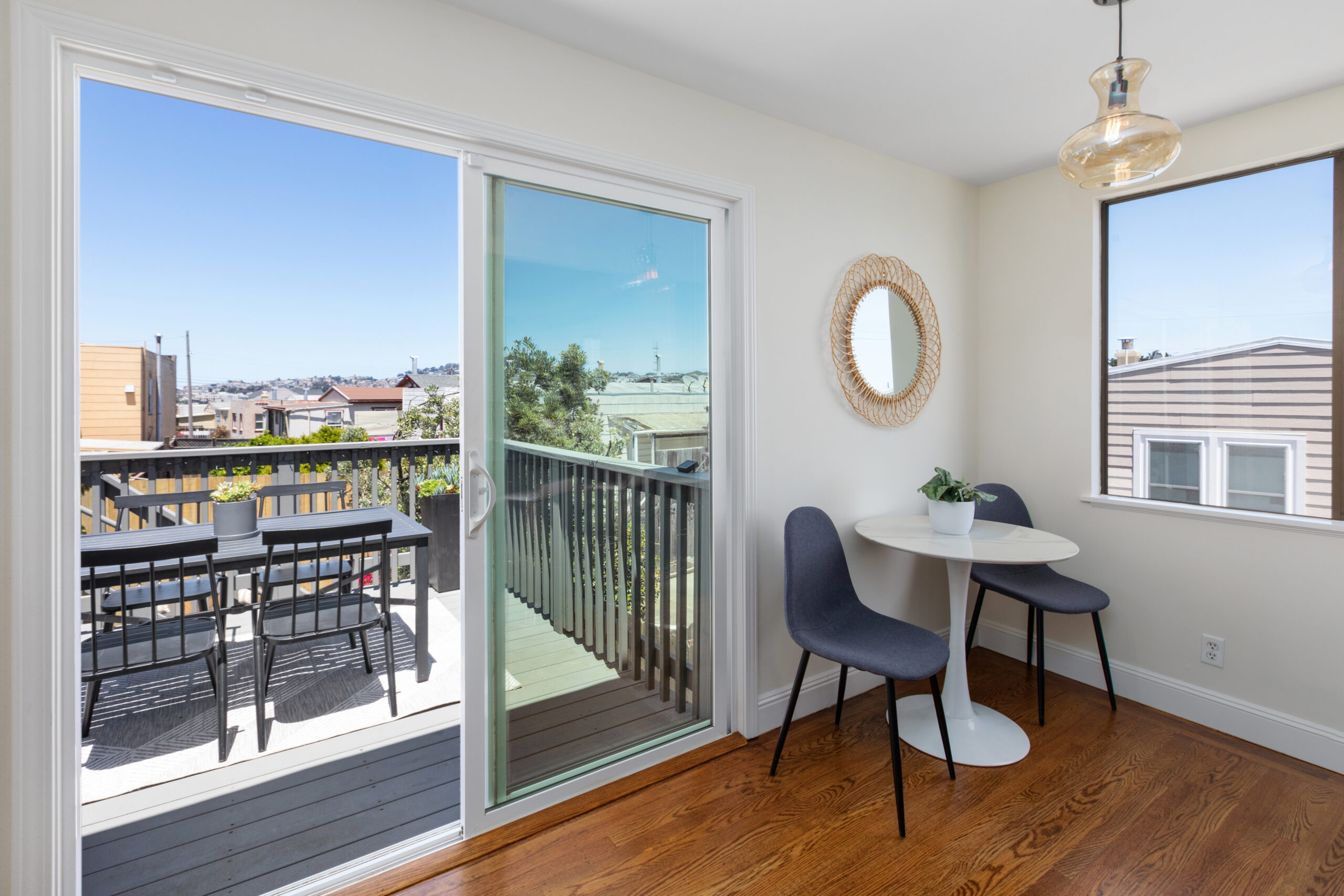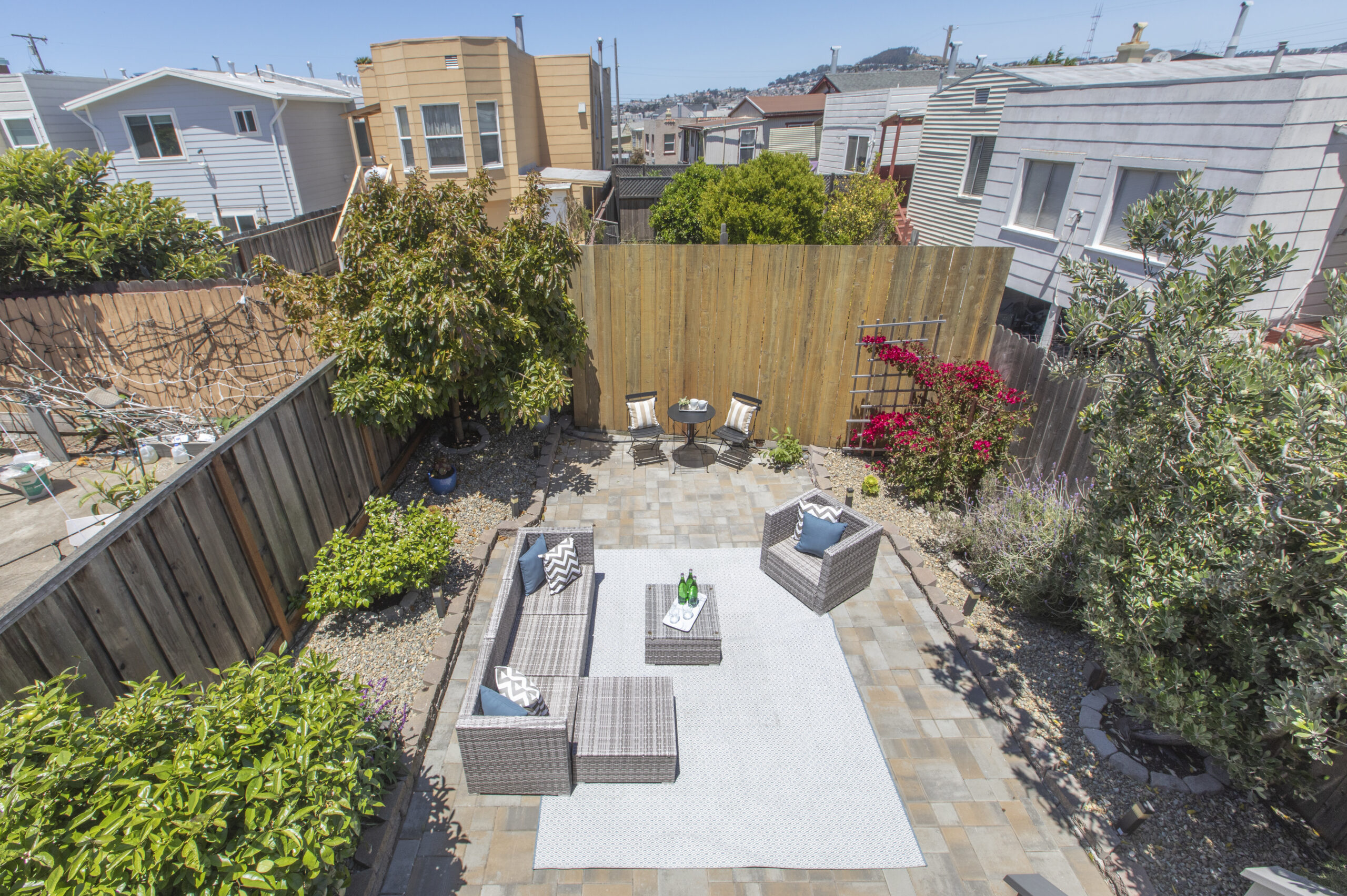 A captivating two-bedroom, two-bath, semi-detached view home complimented with contemporary finishes and cheerful outdoor space nestled in a coveted Crocker Amazon location! The home opens to an inviting formal entryway that leads to the living area with a fireplace and gorgeous wood floors showered with natural sunlight. The main level continues with two spacious bedrooms, two tastefully updated bathrooms, and a large gourmet eat-in kitchen adjacent to a walk-out deck overlooking the garden/backyard/patio creating the perfect ambience for an indoor-outdoor lifestyle. The flat backyard offers mature landscaping and a tranquil Mediterranean courtyard setting ideal for entertaining, a gardener’s paradise, or simple relaxation and repose. There have been major upgrades to this special home including a complete replacement of the perimeter foundation in 2019. The large garage has plenty of room for storage, the potential for future expansion, and an additional parking space on the driveway. Don’t miss this special home that is close to parks, playgrounds, shops, cafes, restaurants, HWY 101/280, and more!