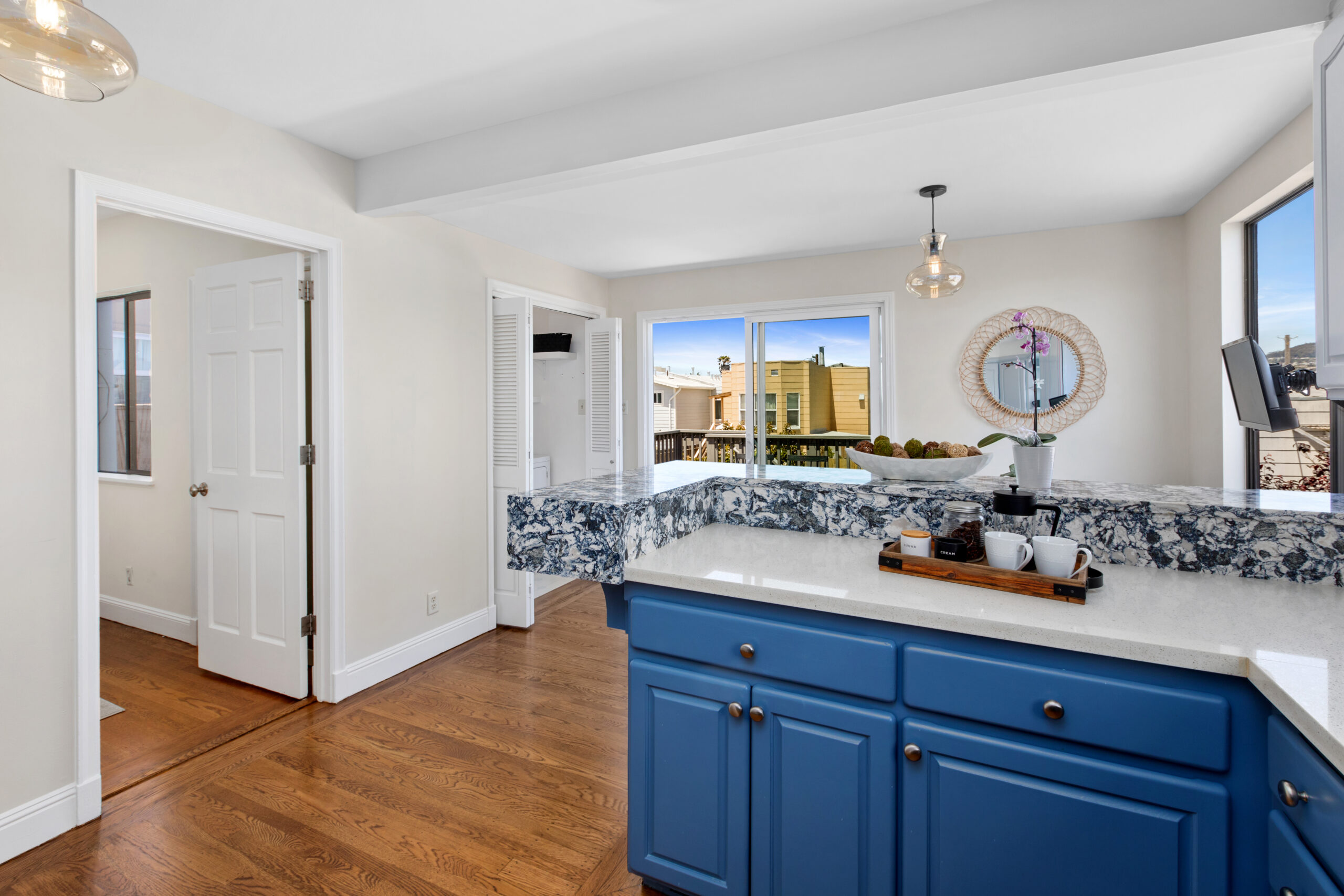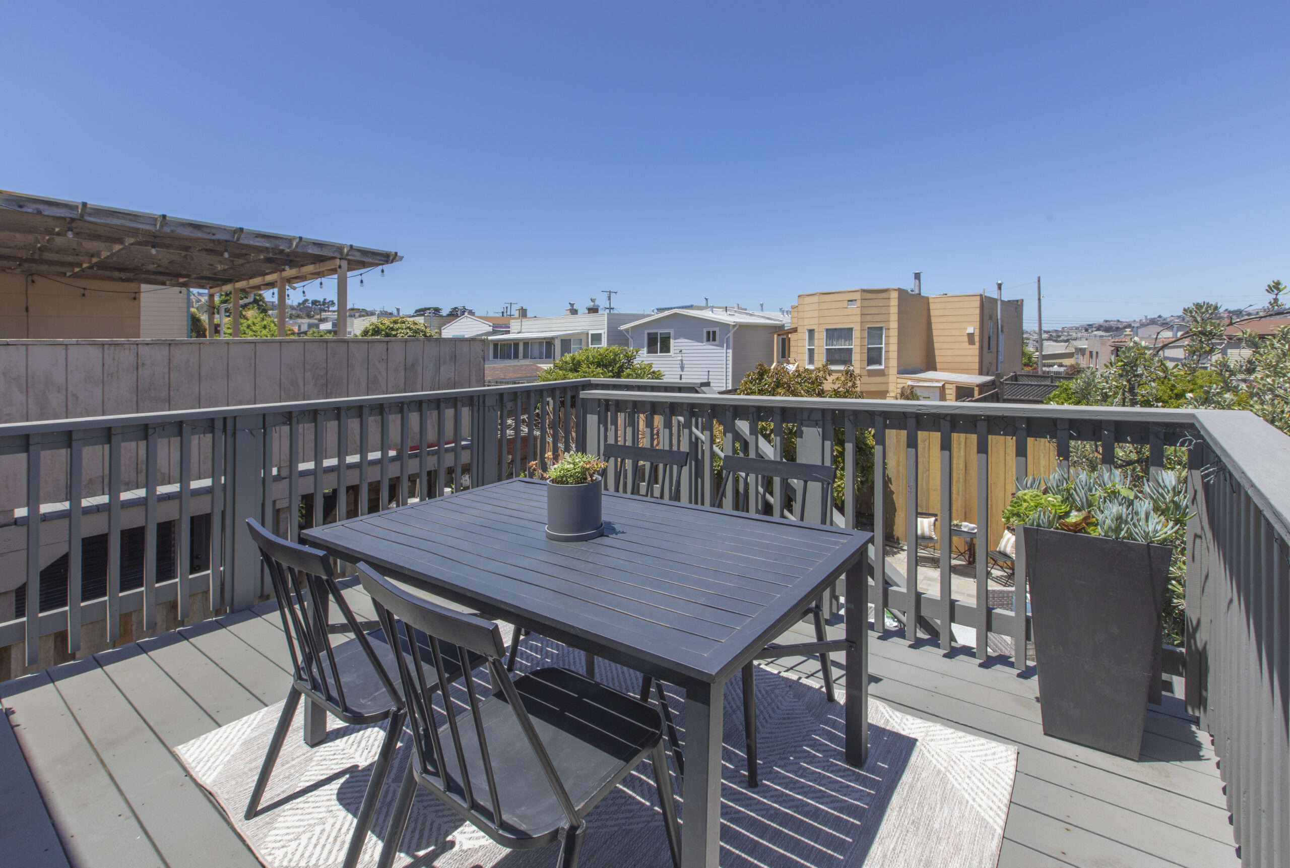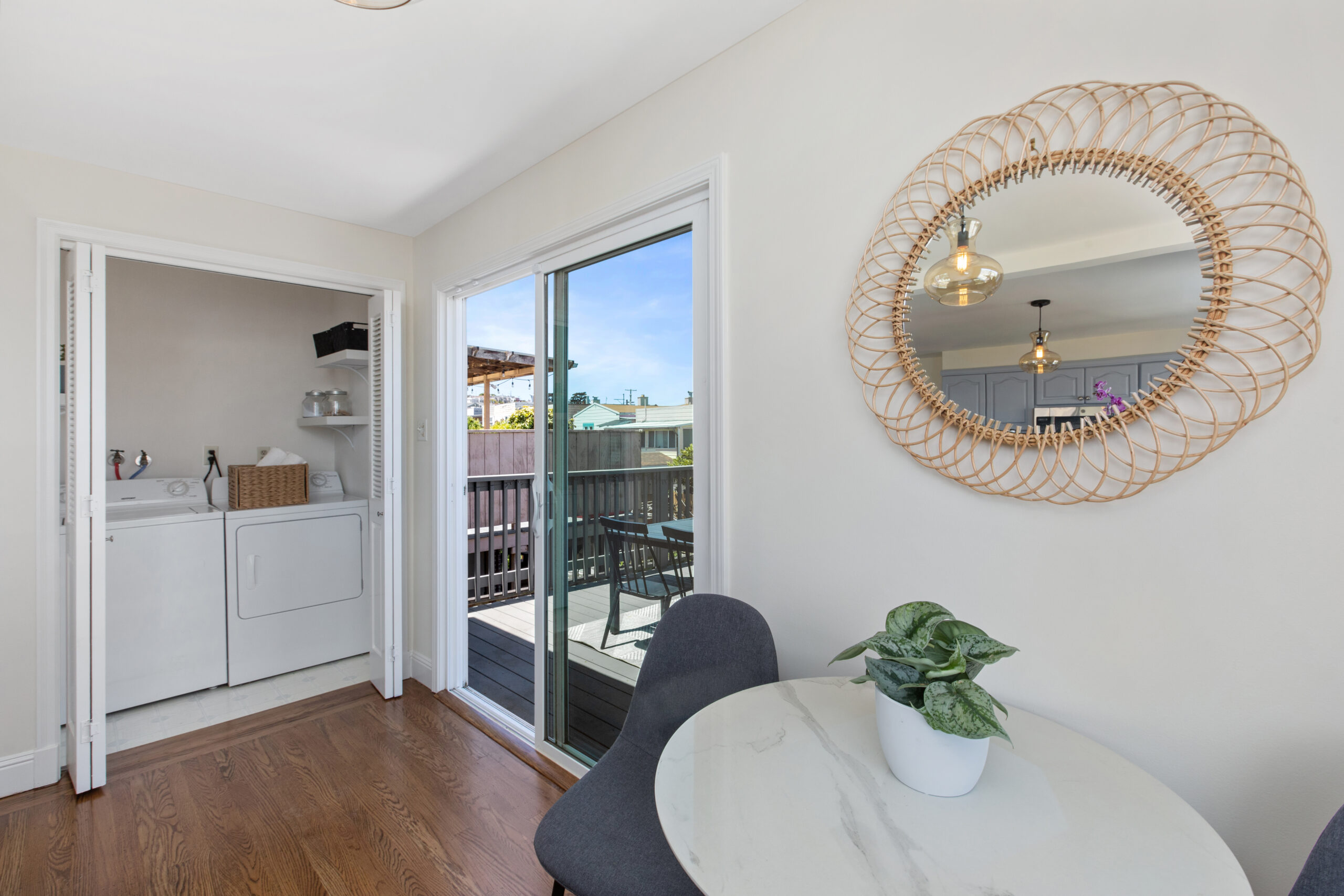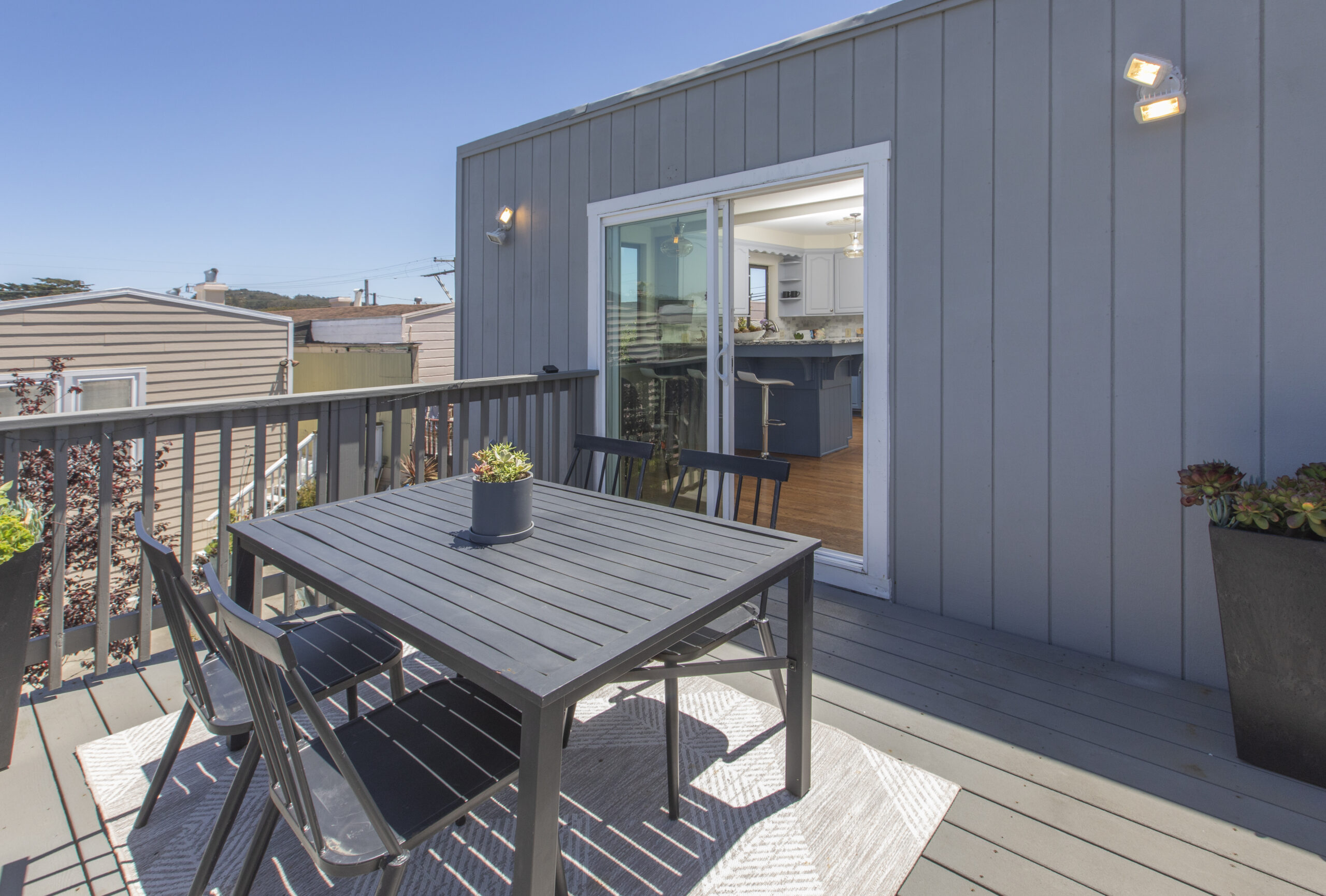 A captivating two-bedroom, two-bath, semi-detached view home complimented with contemporary finishes and cheerful outdoor space nestled in a coveted Crocker Amazon location! The home opens to an inviting formal entryway that leads to the living area with a fireplace and gorgeous wood floors showered with natural sunlight. The main level continues with two spacious bedrooms, two tastefully updated bathrooms, and a large gourmet eat-in kitchen adjacent to a walk-out deck overlooking the garden/backyard/patio creating the perfect ambience for an indoor-outdoor lifestyle. The flat backyard offers mature landscaping and a tranquil Mediterranean courtyard setting ideal for entertaining, a gardener’s paradise, or simple relaxation and repose. There have been major upgrades to this special home including a complete replacement of the perimeter foundation in 2019. The large garage has plenty of room for storage, the potential for future expansion, and an additional parking space on the driveway. Don’t miss this special home that is close to parks, playgrounds, shops, cafes, restaurants, HWY 101/280, and more!