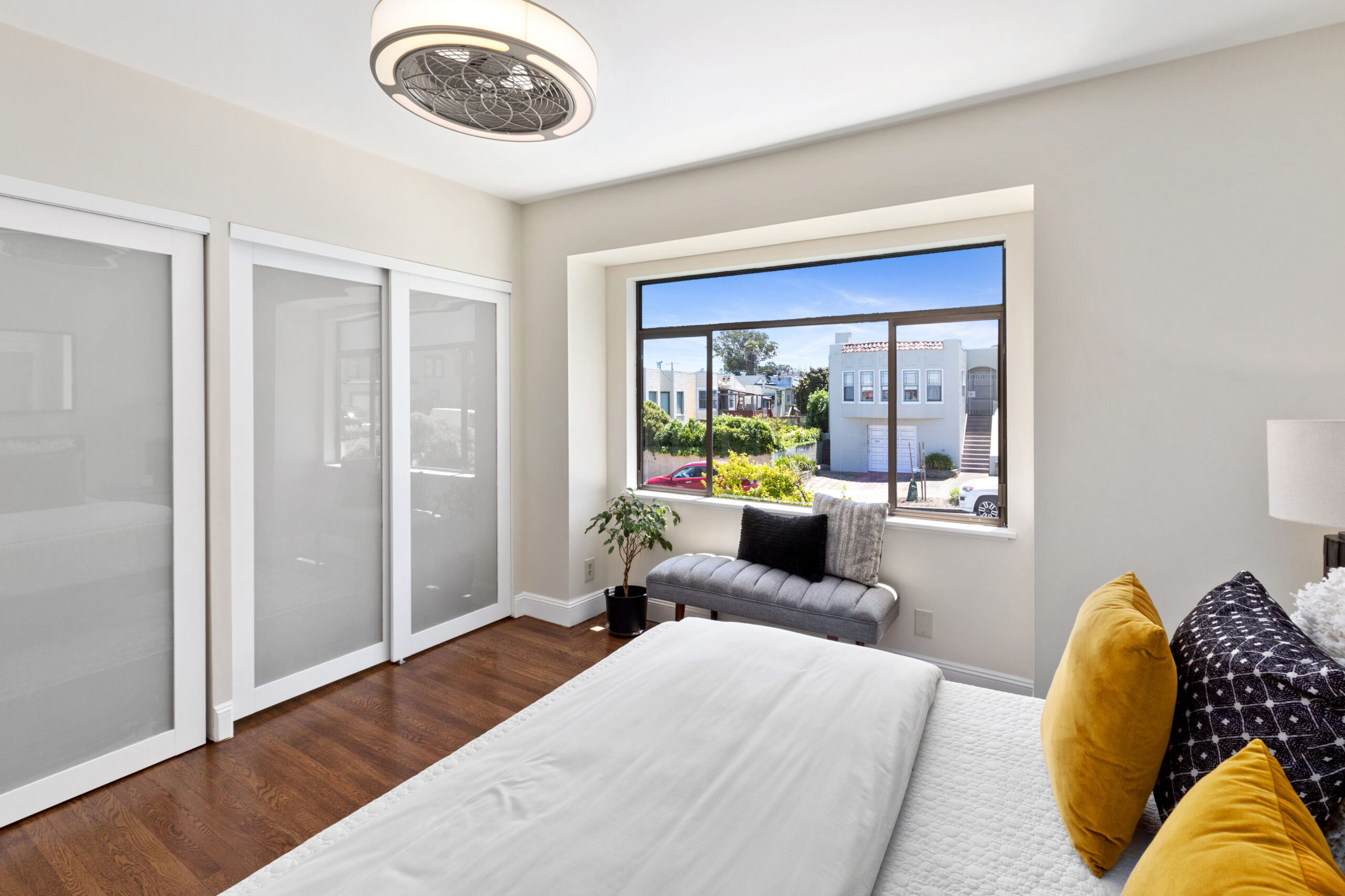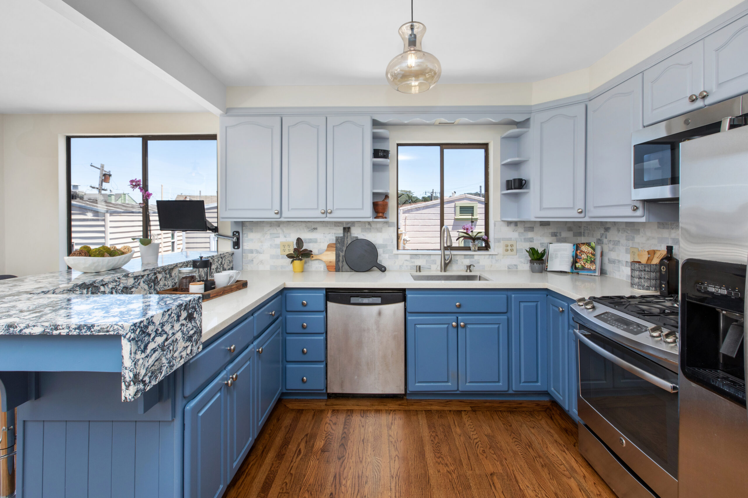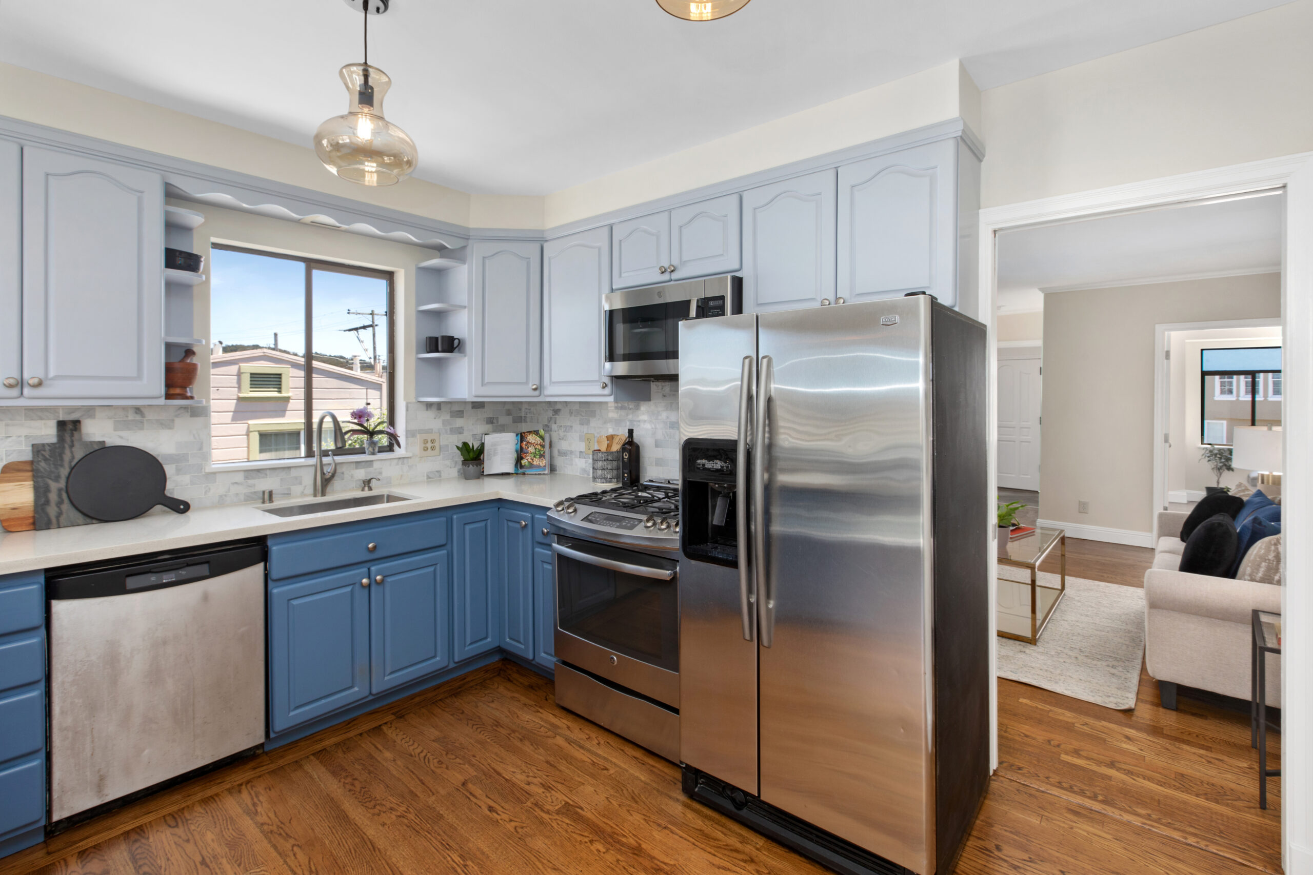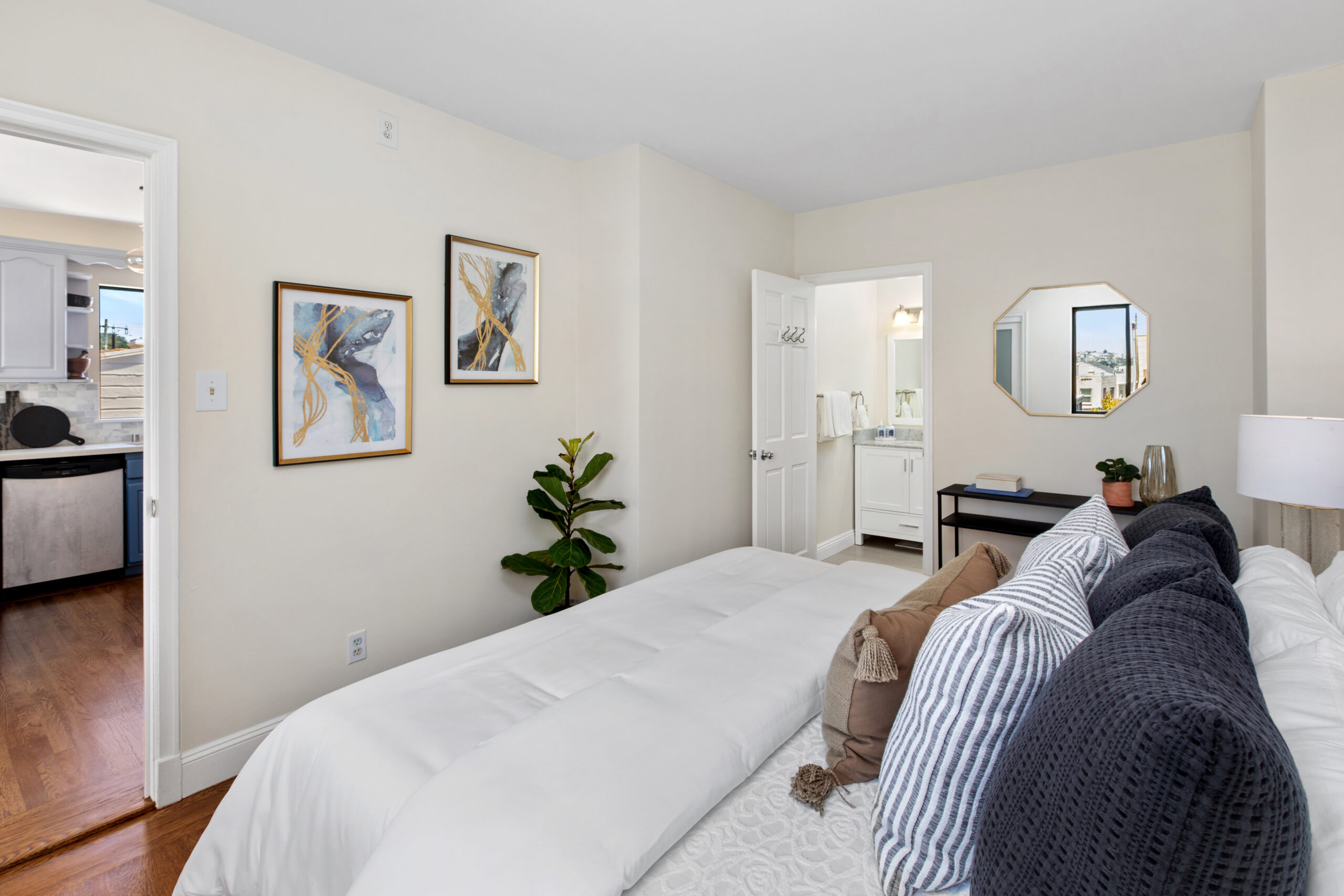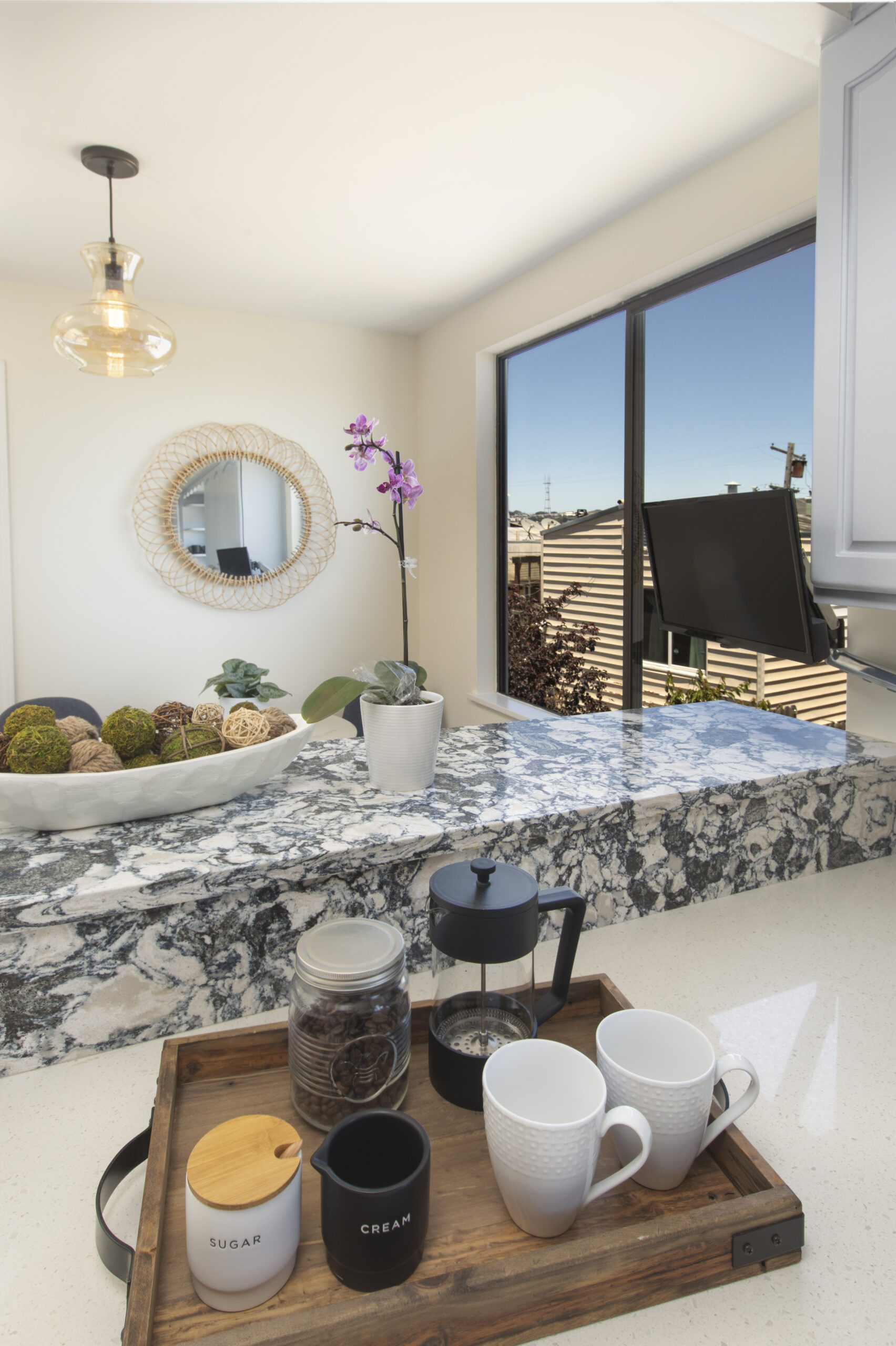 A captivating two-bedroom, two-bath, semi-detached view home complimented with contemporary finishes and cheerful outdoor space nestled in a coveted Crocker Amazon location! The home opens to an inviting formal entryway that leads to the living area with a fireplace and gorgeous wood floors showered with natural sunlight. The main level continues with two spacious bedrooms, two tastefully updated bathrooms, and a large gourmet eat-in kitchen adjacent to a walk-out deck overlooking the garden/backyard/patio creating the perfect ambience for an indoor-outdoor lifestyle. The flat backyard offers mature landscaping and a tranquil Mediterranean courtyard setting ideal for entertaining, a gardener’s paradise, or simple relaxation and repose. There have been major upgrades to this special home including a complete replacement of the perimeter foundation in 2019. The large garage has plenty of room for storage, the potential for future expansion, and an additional parking space on the driveway. Don’t miss this special home that is close to parks, playgrounds, shops, cafes, restaurants, HWY 101/280, and more!