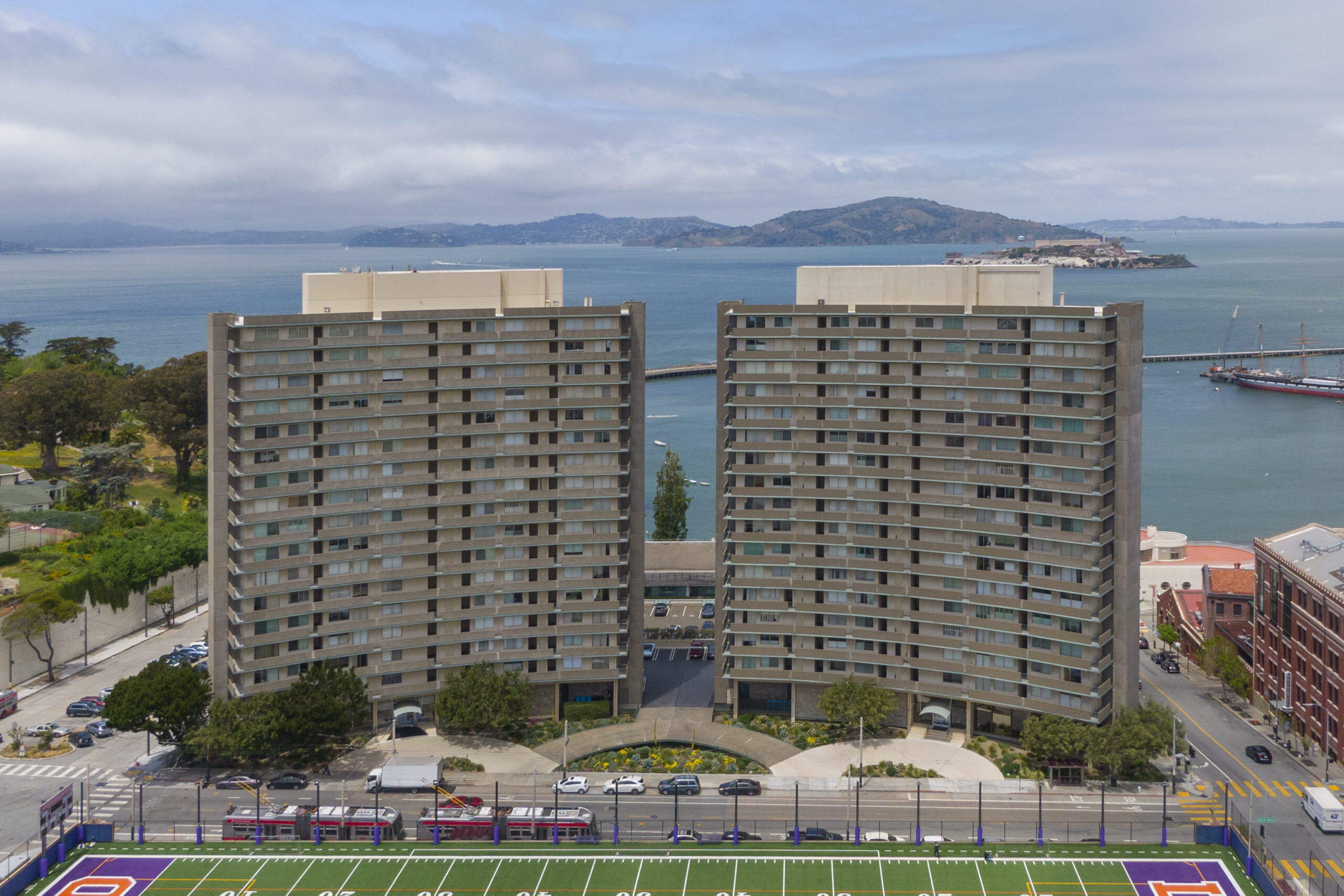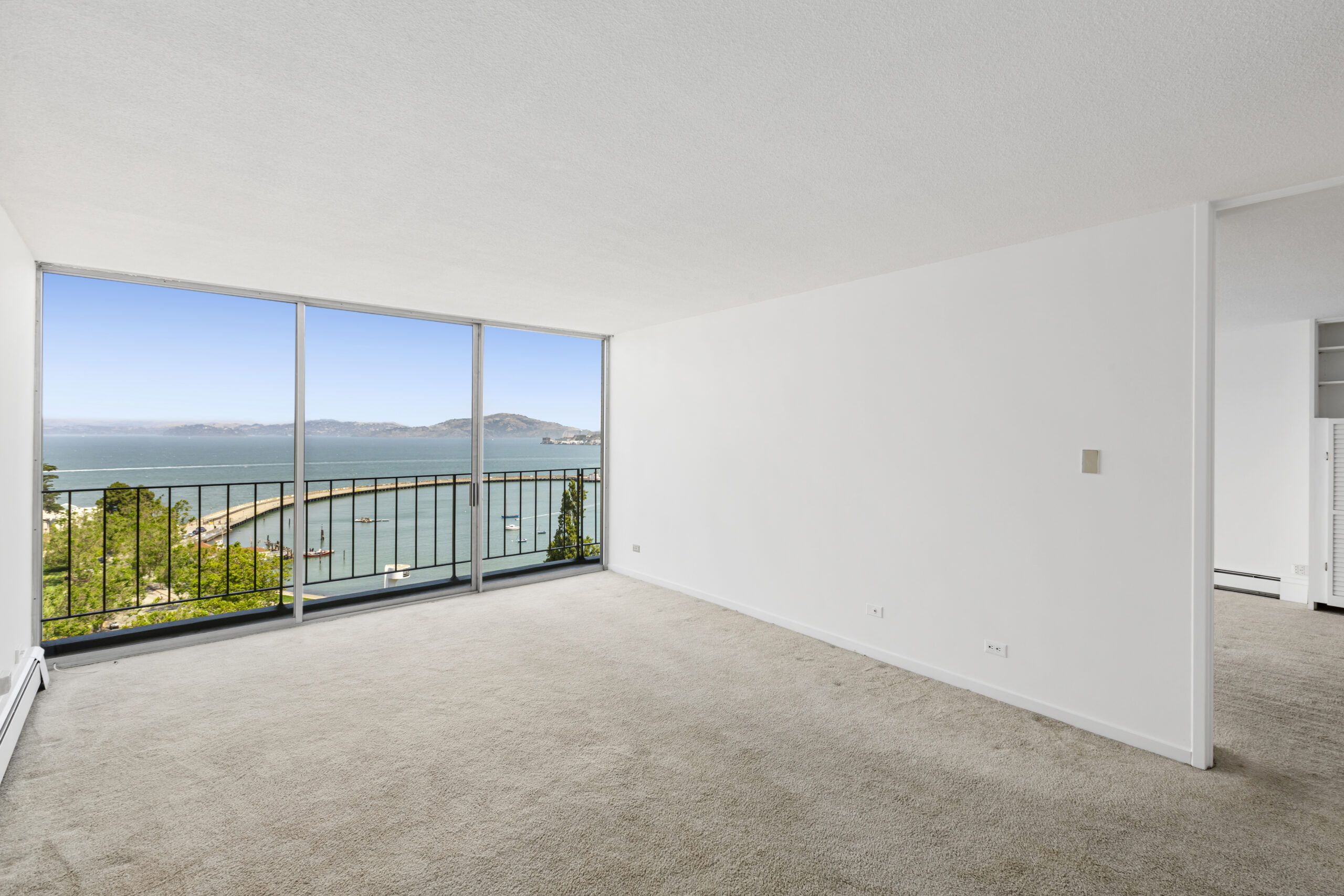 Fabulous opportunity to own a one-bedroom flat with phenomenal Bay views in the historic Russian Hill district of San Francisco! The flat showcases a unique and coveted floor plan with a large bedroom that faces North with a panoramic view of the Bay and beyond, an open kitchen/dining area and deck/patio also graced with postcard worthy views. The home is move-in ready, or the perfect open slate for the buyer who wants to add the finishing touches to make this their own special refuge inspired by their individual creativity and taste. The Fontana West offers a heated swimming pool and 24-hour doorman service adding security and convenience to your lifestyle in a location that is near North Beach, the Marina, Ghirardelli Square, Aquatic Park, Marina Green, world class dining, Pier 39, the Presidio, and more.