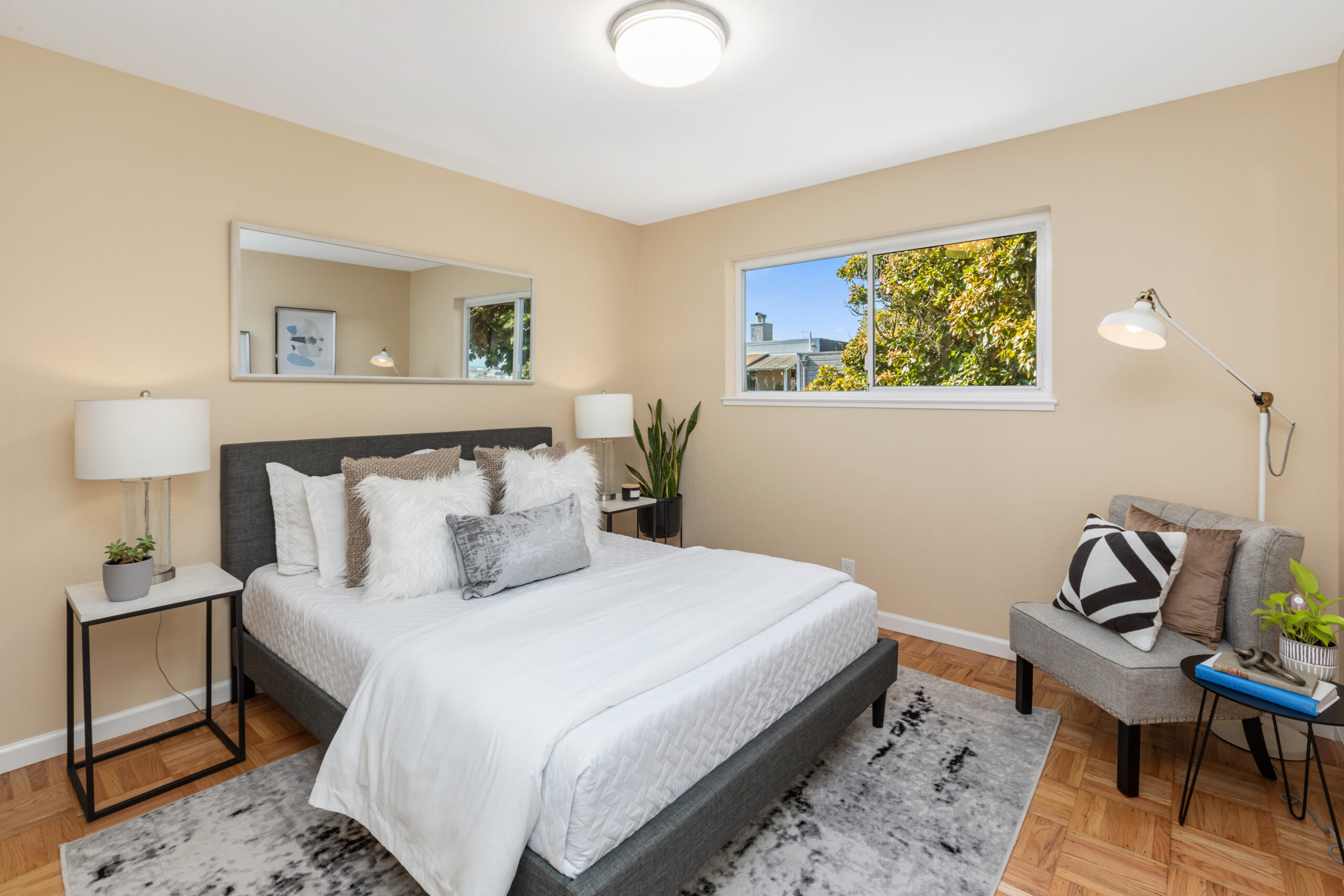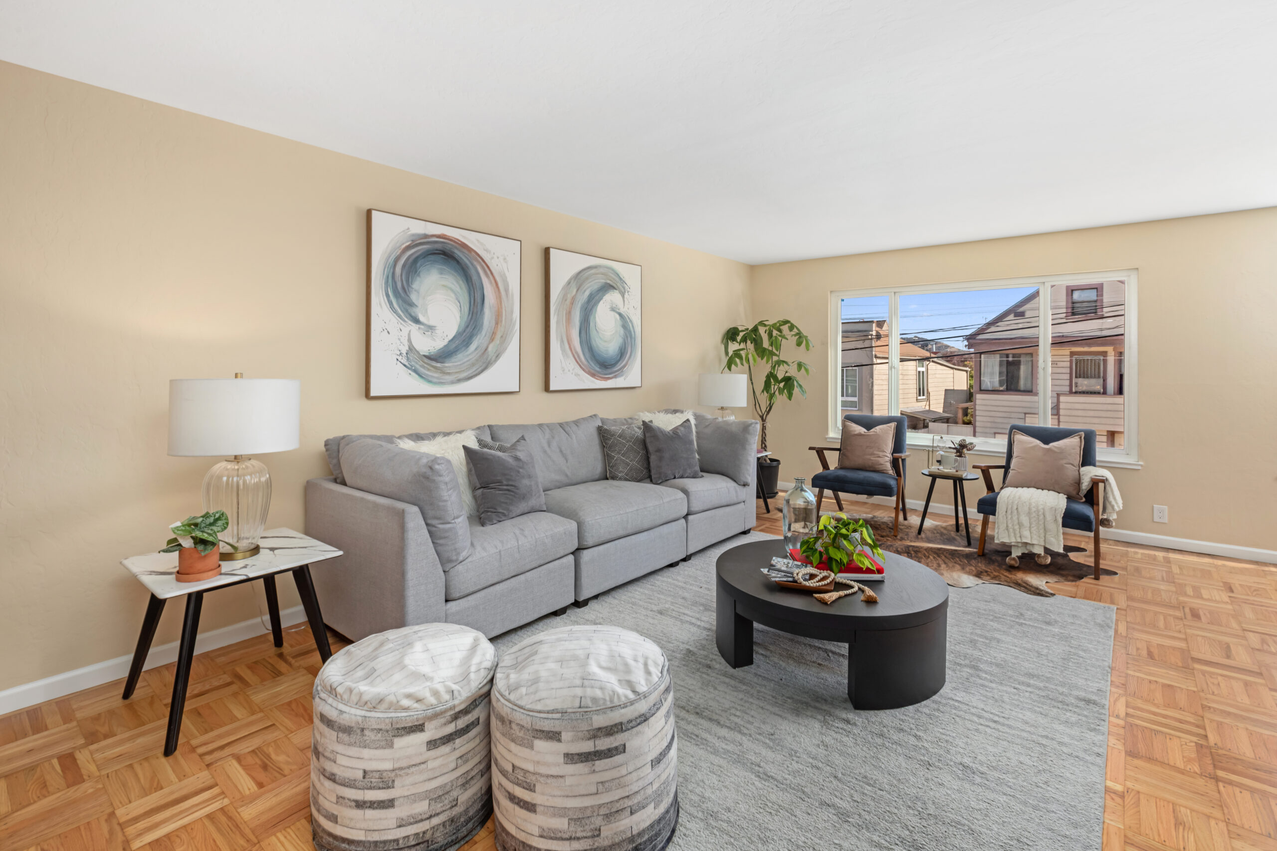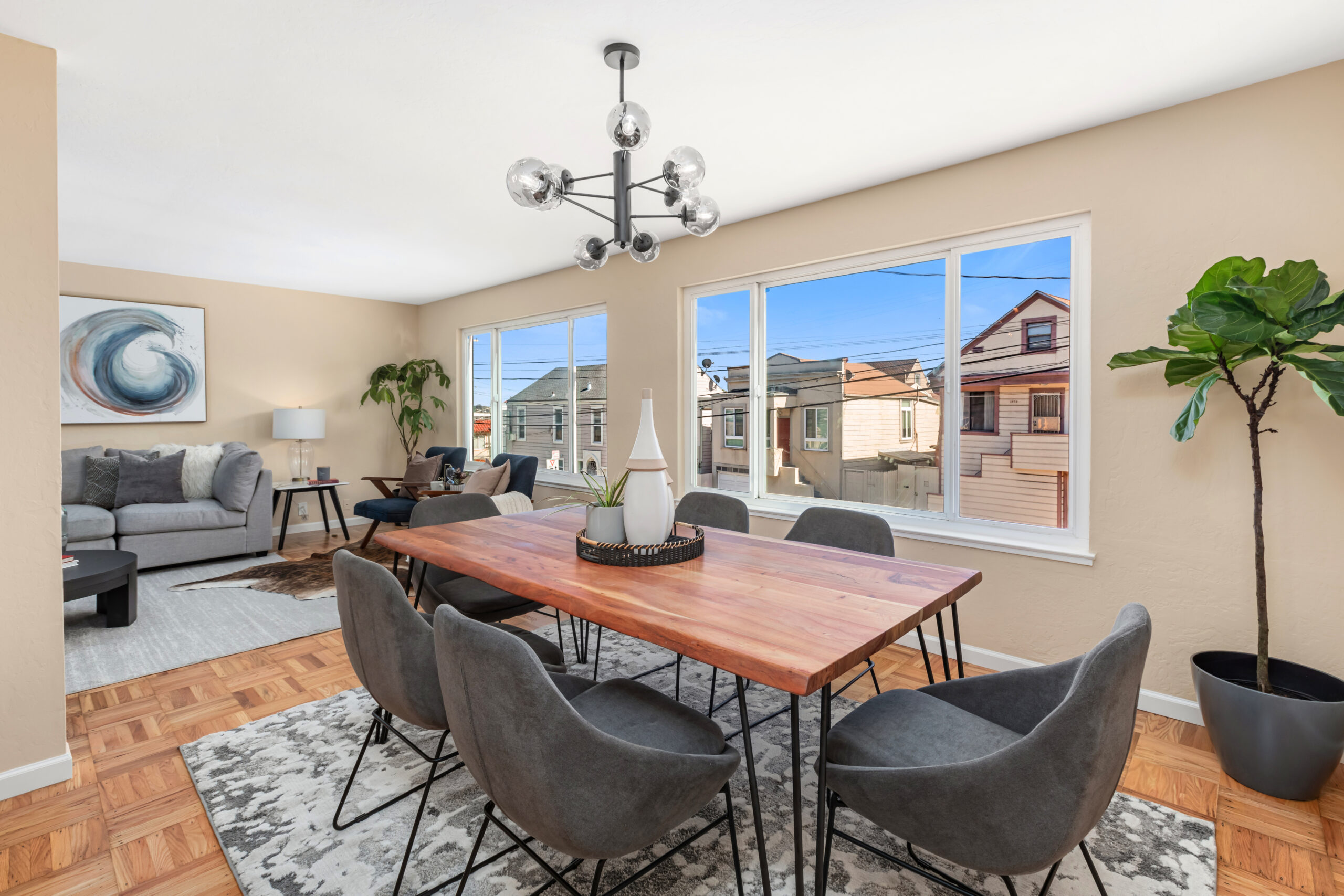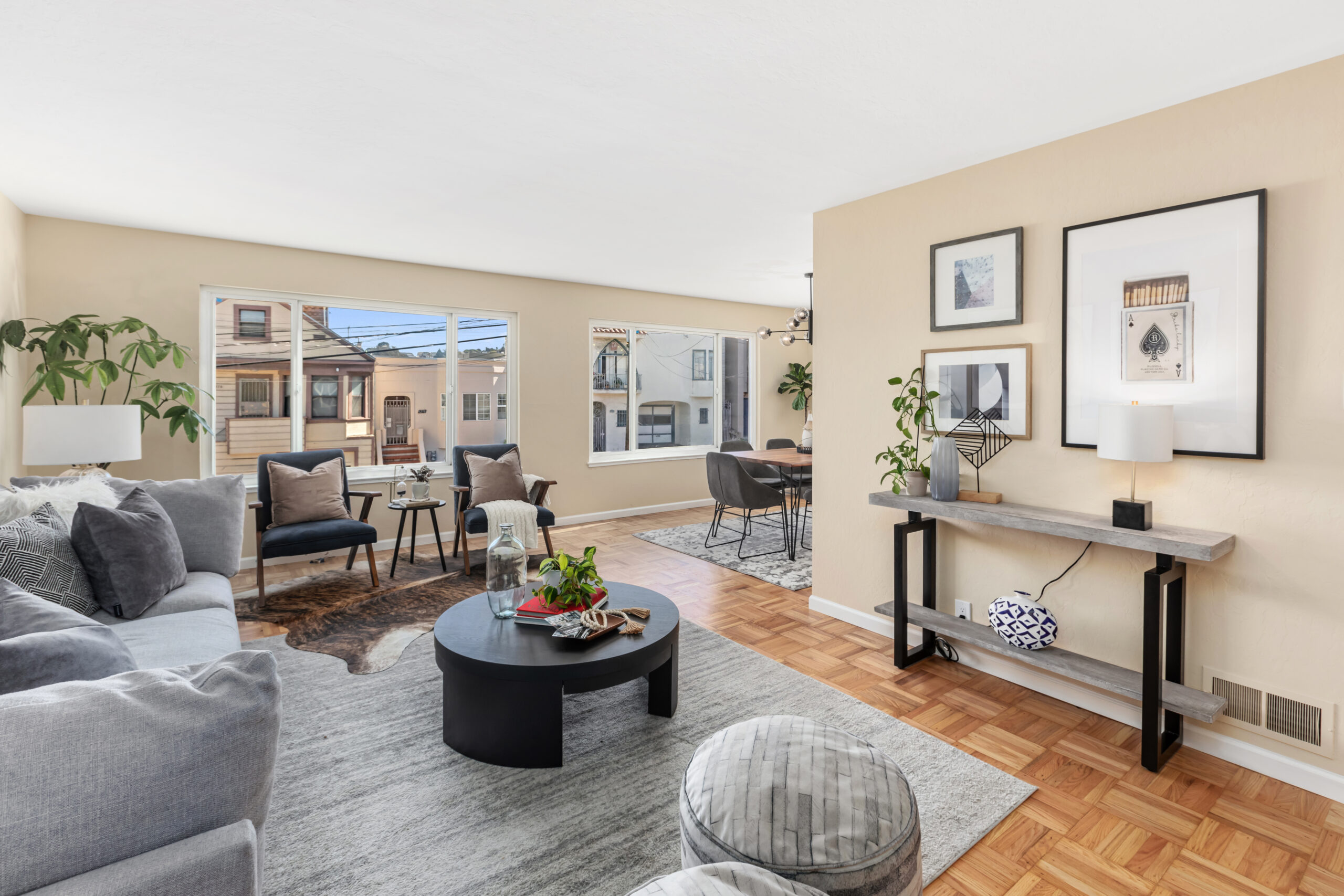 A contemporary and cheerful two-unit investment home characterized by Mid-century style coupled with modern accents and located in an ideal Portola location! Behind the quintessential Mid-Century façade, the vacant flat (#1283) opens to gorgeous wood floors, a large living/dining area with fireplace graced with an abundance of natural light, remodeled gourmet eat-in kitchen with new appliances, updated bathroom, and two large bedrooms facing the garden. This flat has been tastefully updated, has a coveted floor plan, and will be delivered vacant with an independent parking space and storage. Unit #1285 has an identical floor plan. There is a large garage which has plenty of room for storage, and a laundry area that leads to the backyard/patio. Upgrades have been made to the systems including newer windows, water heaters, and furnaces to keep the building well maintained. There are two separate water meters. Don’t miss this incredible investment opportunity that is near cafes, restaurants, shopping, parks, playgrounds, public transportation, HWY 101/280 and much more!