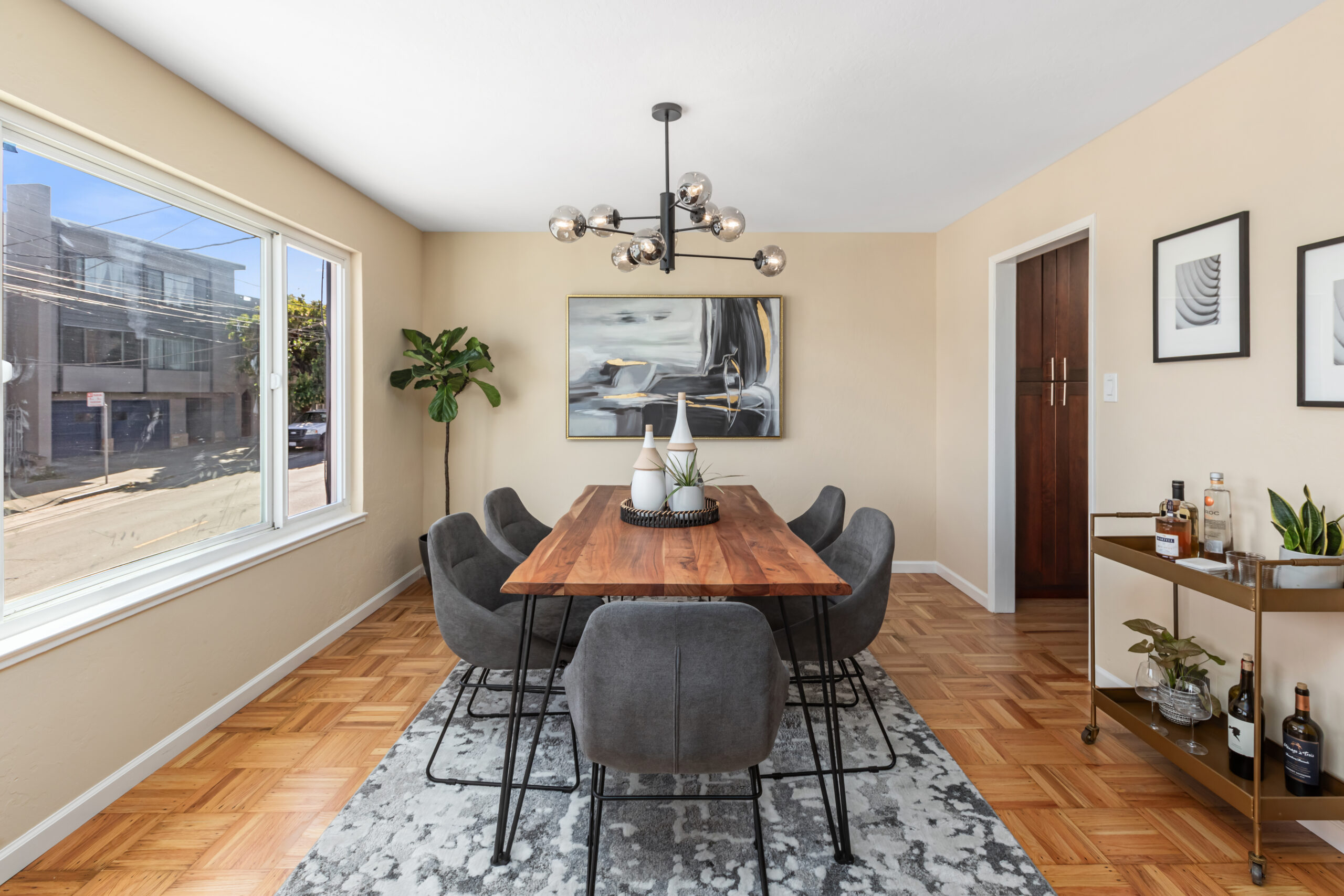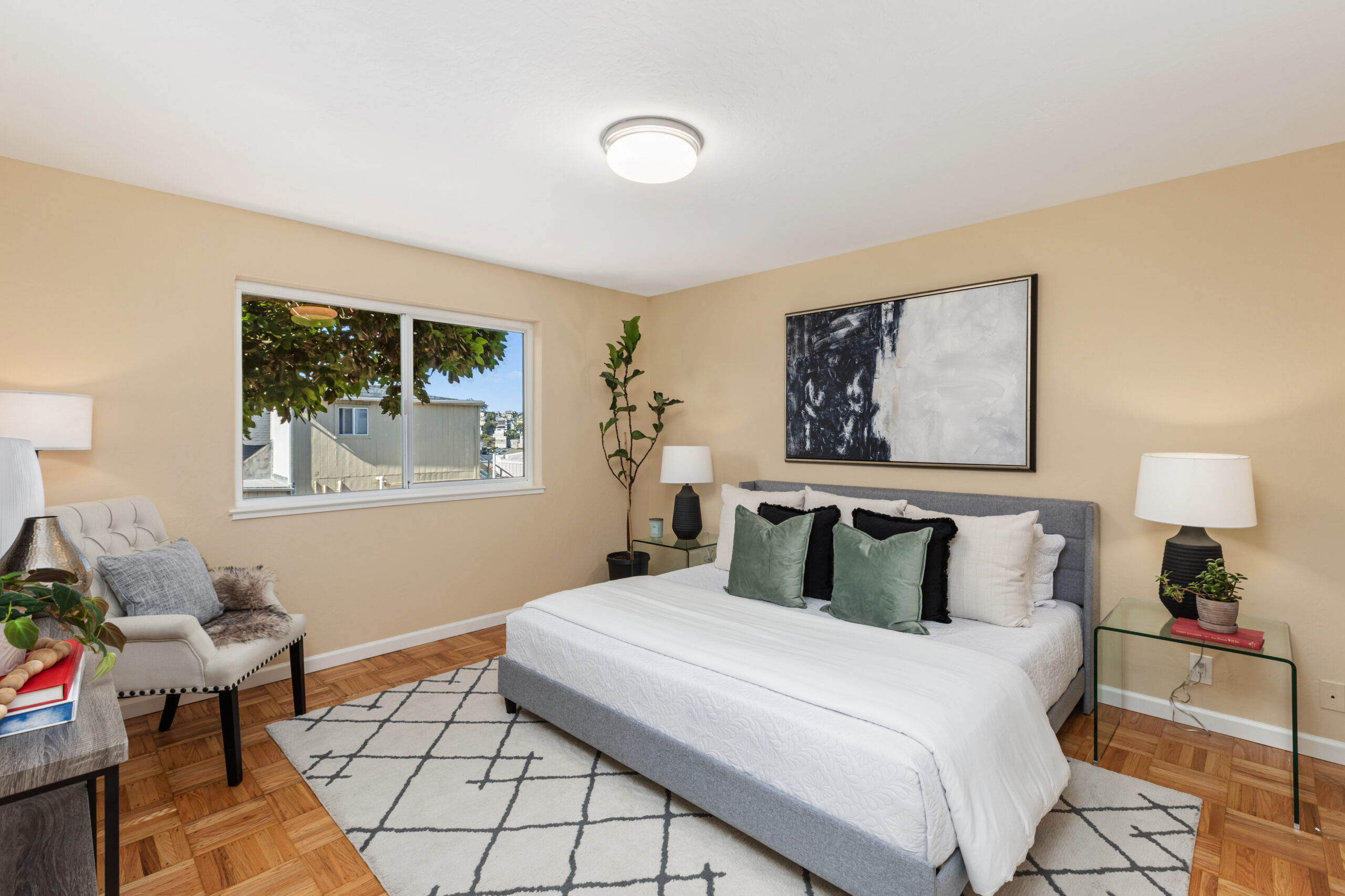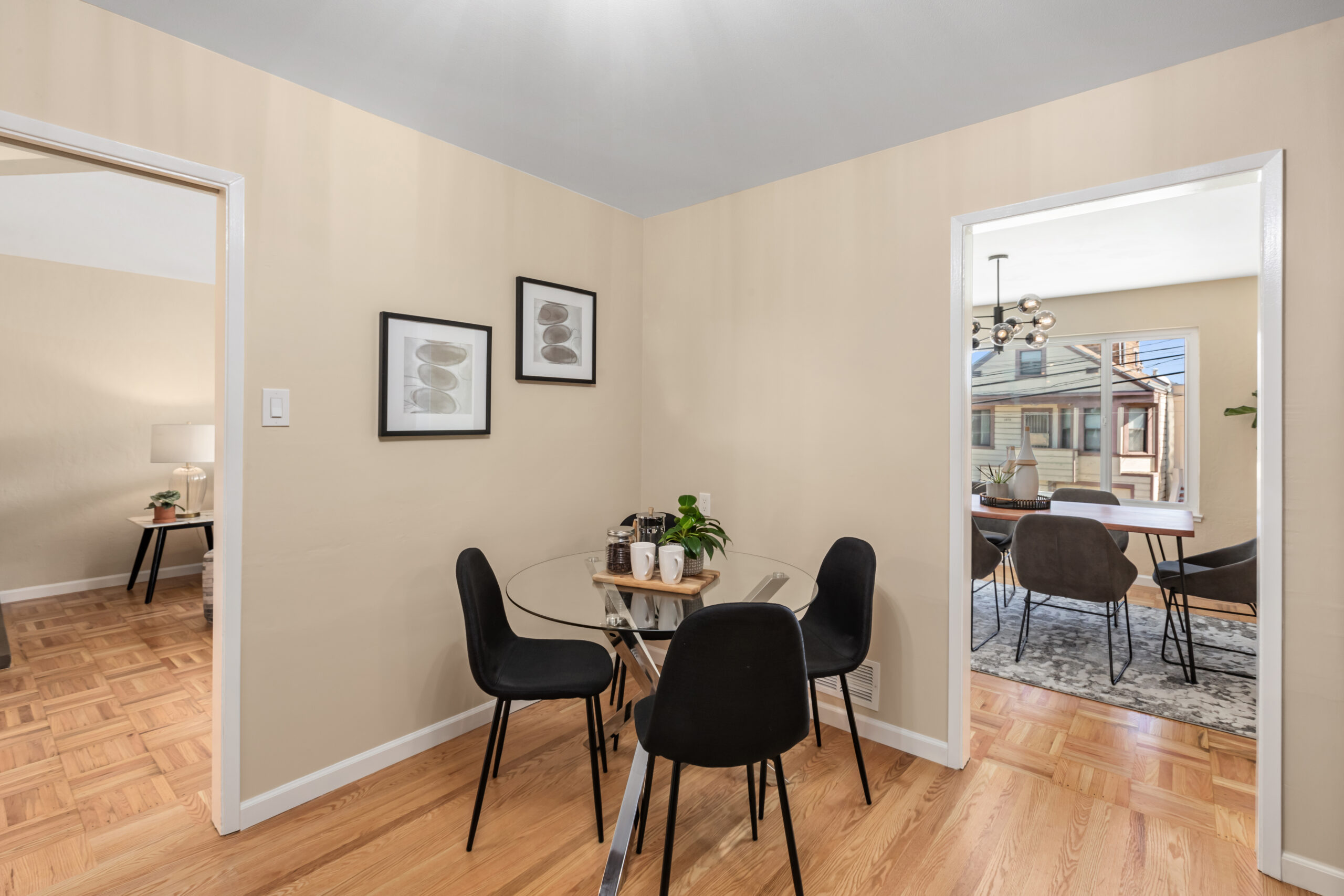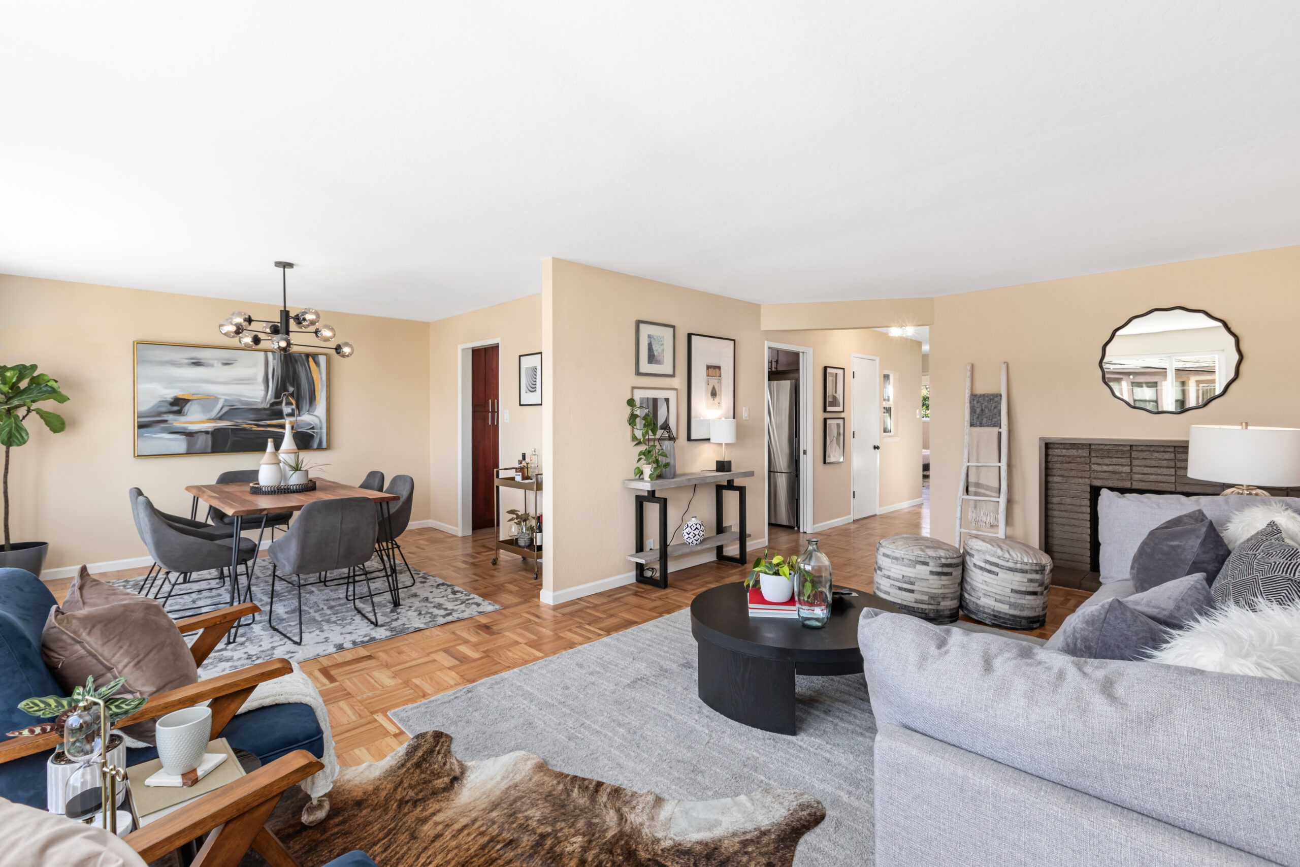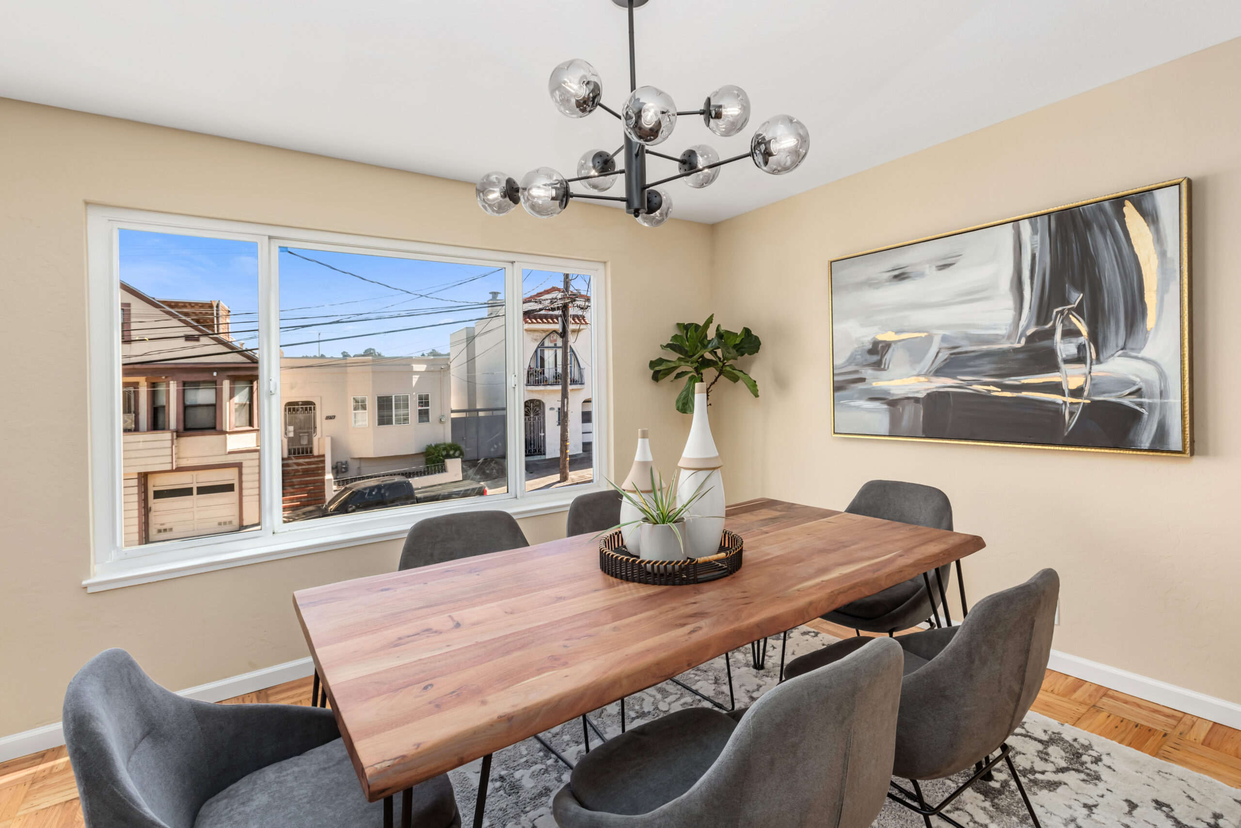 A contemporary and cheerful two-unit investment home characterized by Mid-century style coupled with modern accents and located in an ideal Portola location! Behind the quintessential Mid-Century façade, the vacant flat (#1283) opens to gorgeous wood floors, a large living/dining area with fireplace graced with an abundance of natural light, remodeled gourmet eat-in kitchen with new appliances, updated bathroom, and two large bedrooms facing the garden. This flat has been tastefully updated, has a coveted floor plan, and will be delivered vacant with an independent parking space and storage. Unit #1285 has an identical floor plan. There is a large garage which has plenty of room for storage, and a laundry area that leads to the backyard/patio. Upgrades have been made to the systems including newer windows, water heaters, and furnaces to keep the building well maintained. There are two separate water meters. Don’t miss this incredible investment opportunity that is near cafes, restaurants, shopping, parks, playgrounds, public transportation, HWY 101/280 and much more!