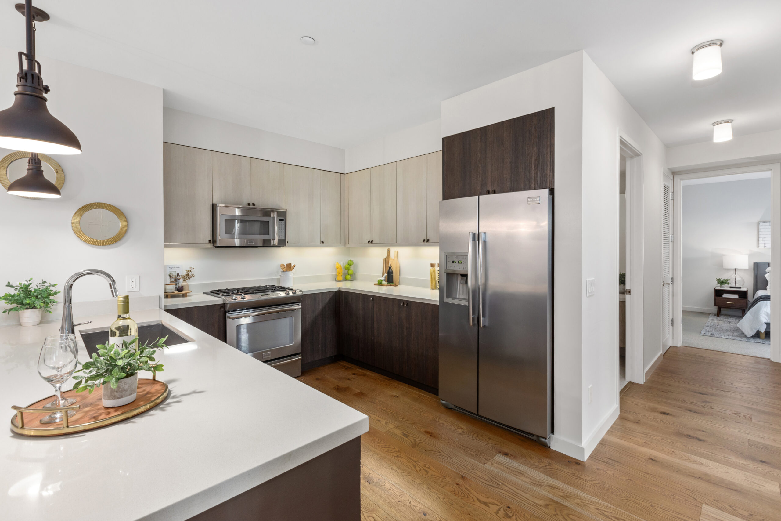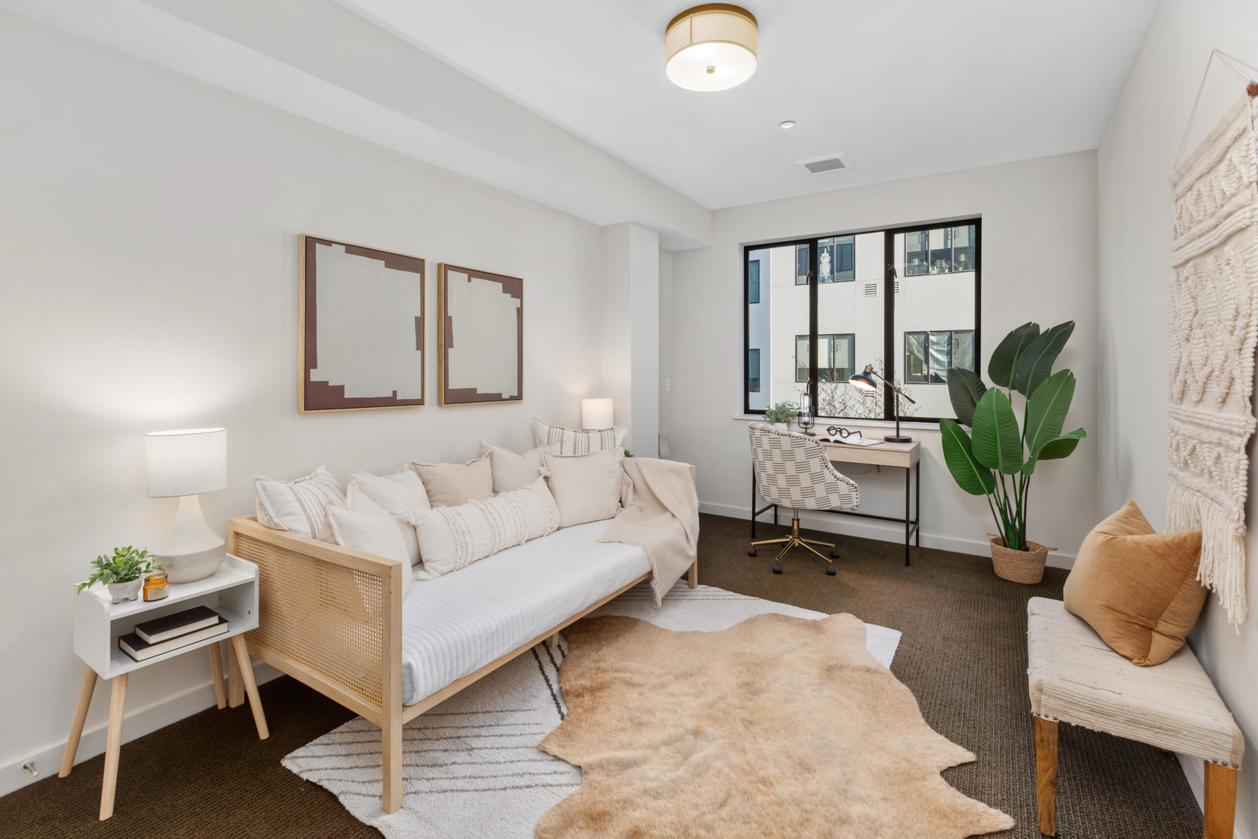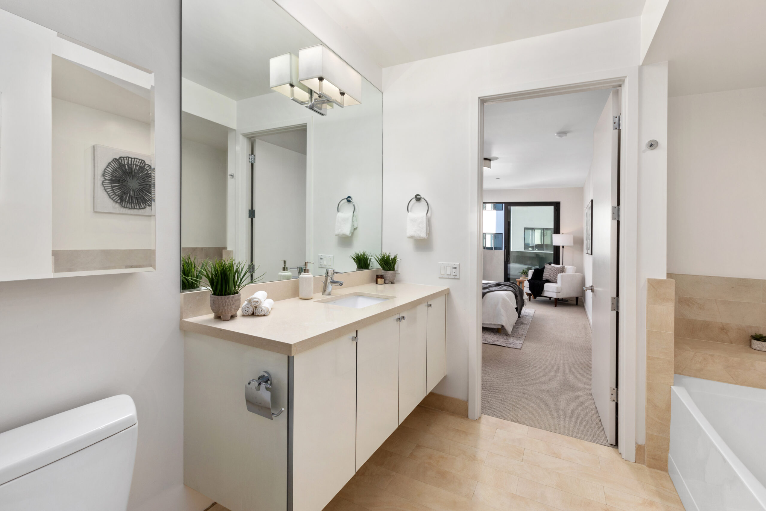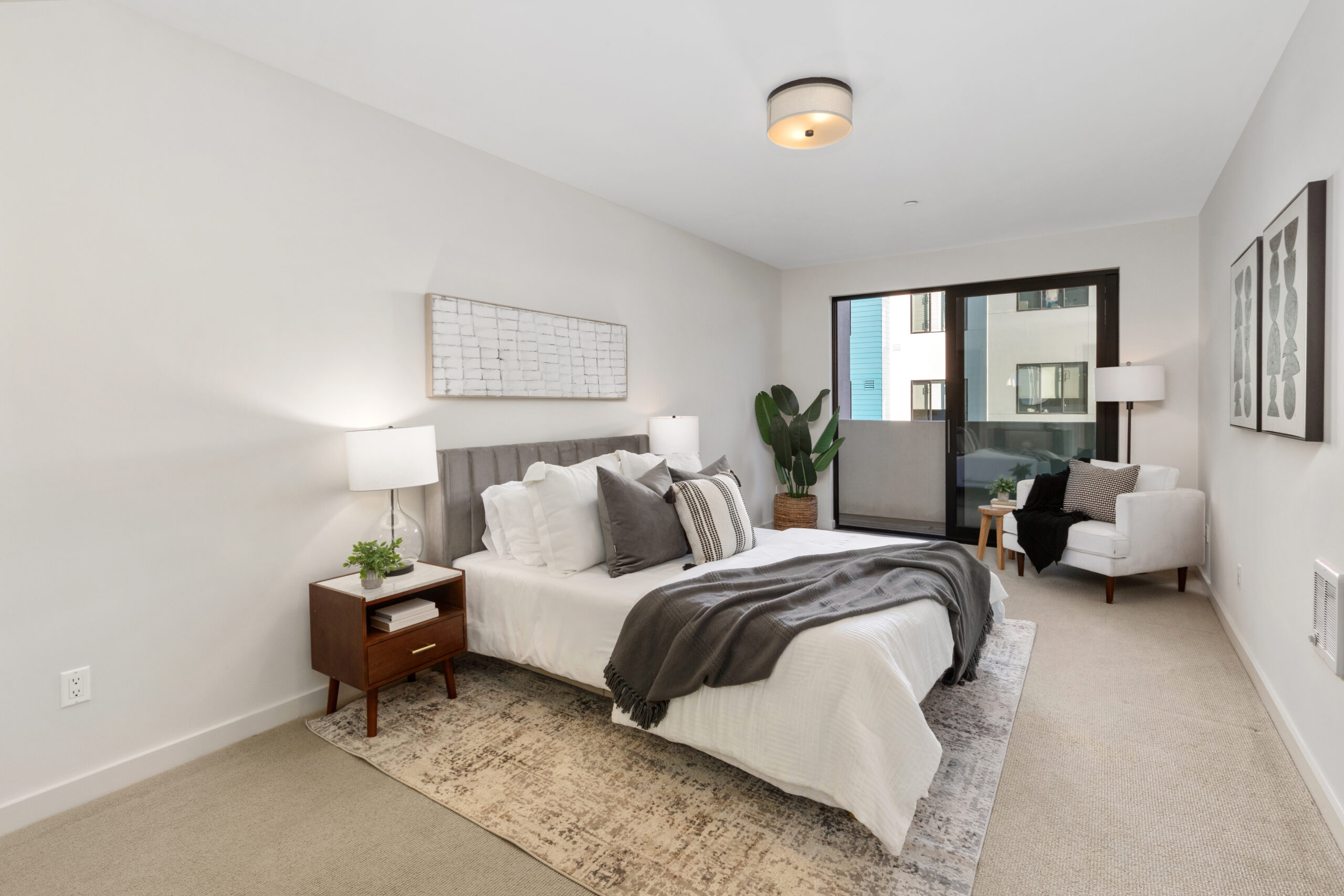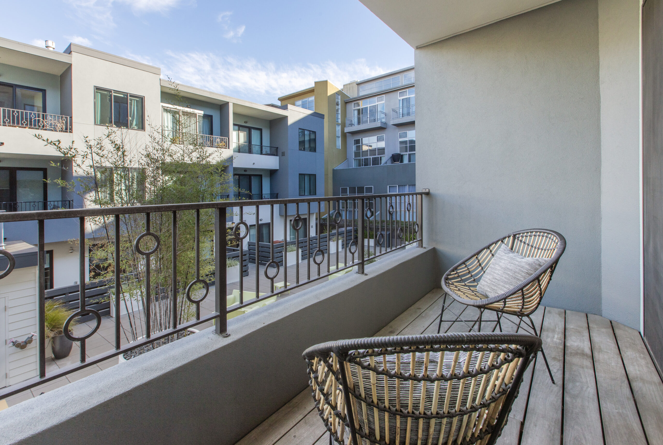 Spectacular and spacious three-bedroom, two-bath flat with sophisticated finishes, stylish accents, two parking spaces, storage space and located in a stellar Dogpatch location! The flat opens to a modern open floor plan with a large living/dining area, fireplace, contemporary kitchen and direct access to the first of two private outdoor spaces that overlook the mature landscaping and common grounds. The windows face east allowing for an abundance of natural light to the living area and all three bedrooms. There are two large bedrooms with ample closet space, a full bathroom, and a conveniently located laundry closet with stackable washer/dryer. The voluminous third bedroom can easily fit a king-sized bed, has an oversized walk-in closet, en-suite bathroom, and opens to a private deck/outdoor space. This flat presents a unique and coveted offering of two parking spaces and deeded storage in this well-maintained elevator building. Don’t miss the wonderful opportunity to own a home in the vibrant Dogpatch that is close to parks, playgrounds, shops, restaurants, Chase Center, Crane Cove, CalTrans, HWY 101/280 and more!