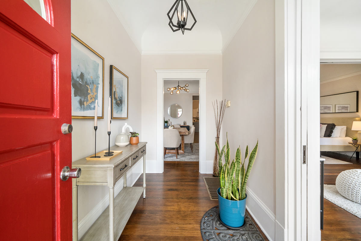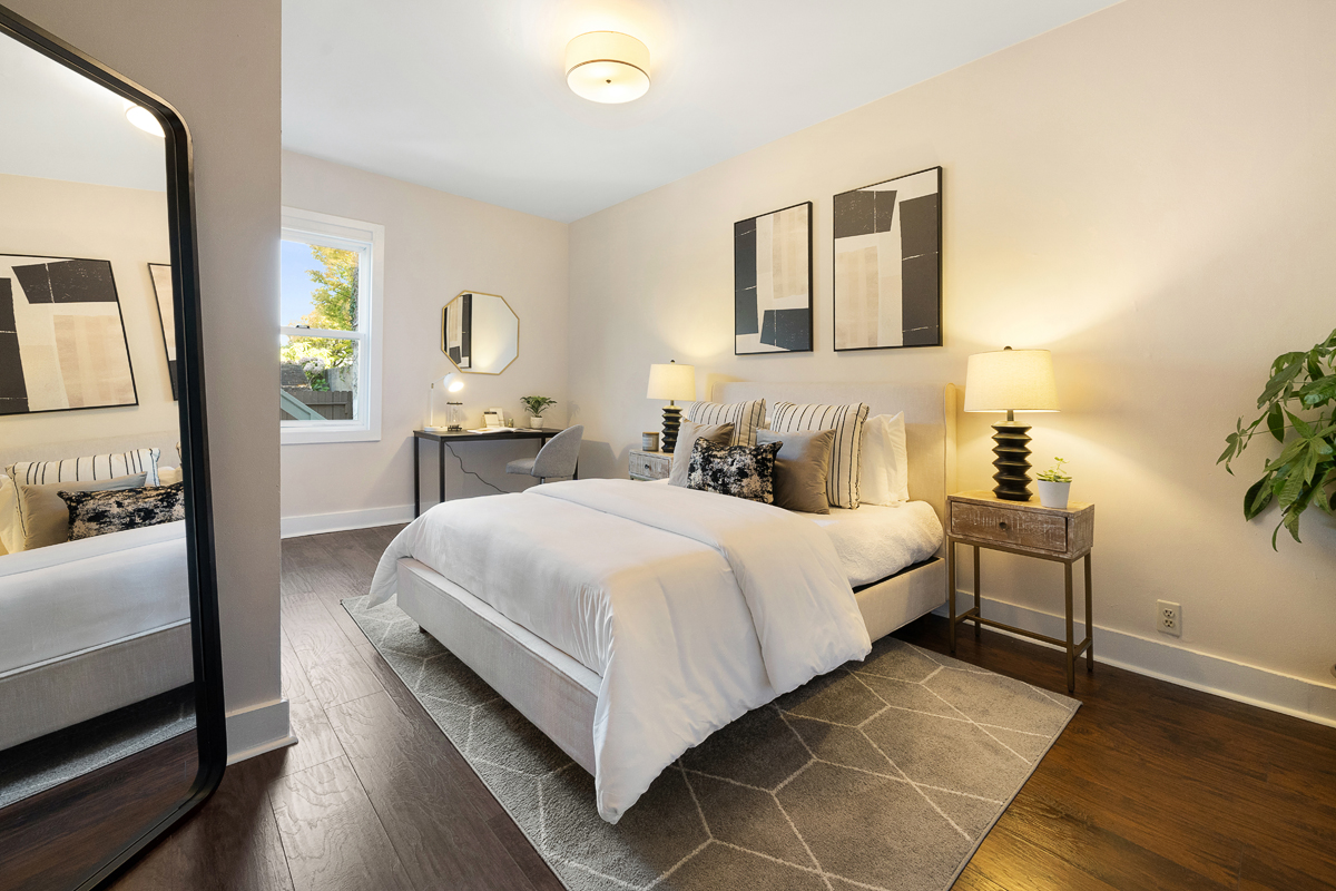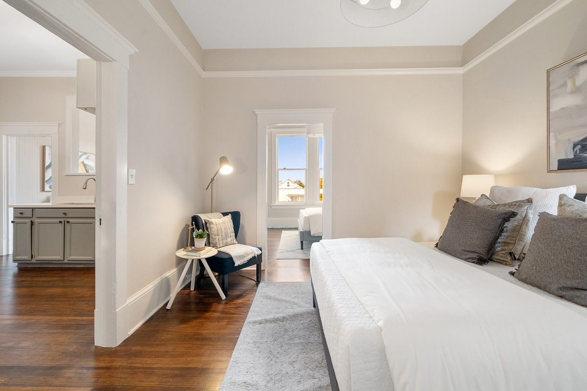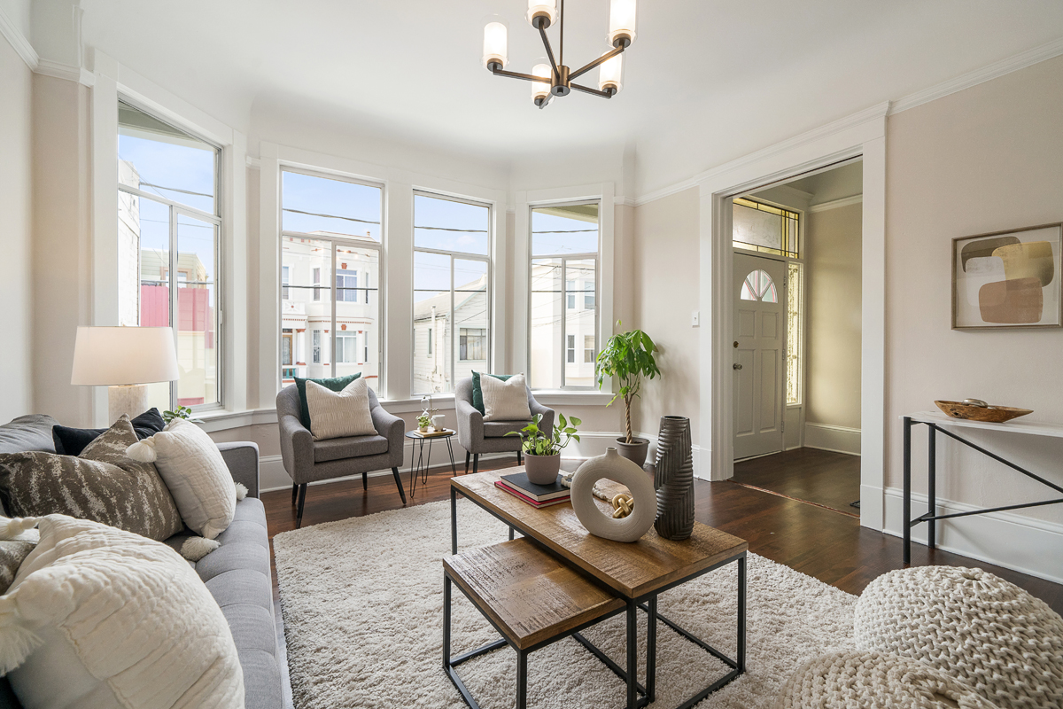 Spacious five bedroom, two and a half-bath home scented with period details, a stately façade and located on the border of two sensational neighborhoods: Mission Terrace and Excelsior! The classic formal entryway opens to gorgeous wood floors, a formal living room, dining room, a large eat-in kitchen, bathroom, three bedrooms, a half-bath and an office nook that looks out to the large flat backyard/garden. The lower-level living space with separate access offers a flexible floor plan featuring two additional bedrooms, a bathroom, and wet bar that leads to the backyard/garden/patio. The generous sized garage has additional storage areas and an additional parking space in front. Don’t miss the wonderful opportunity to own a home in a spectacular location that is close to parks, playgrounds, shops, cafes, restaurants, HWY 101/280 and more!