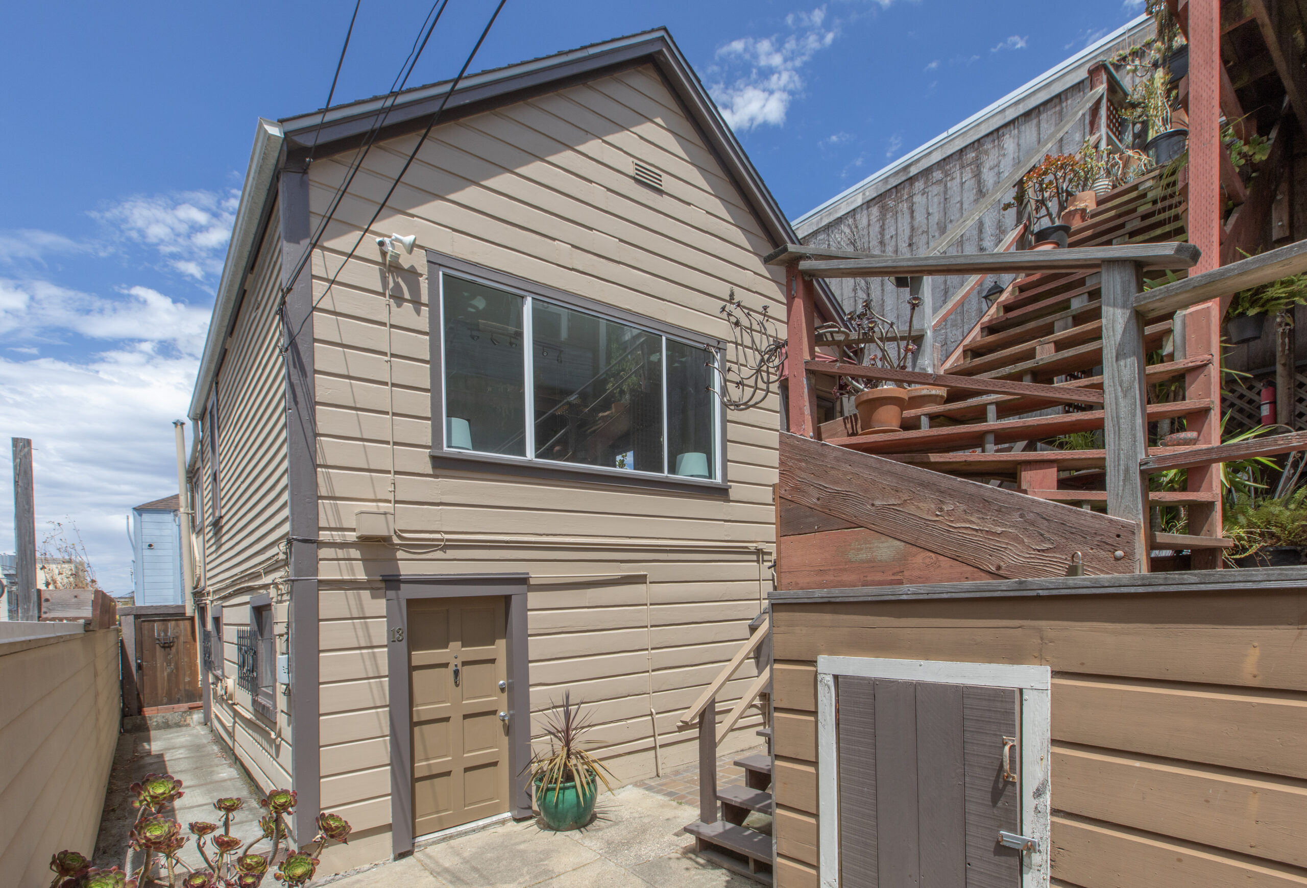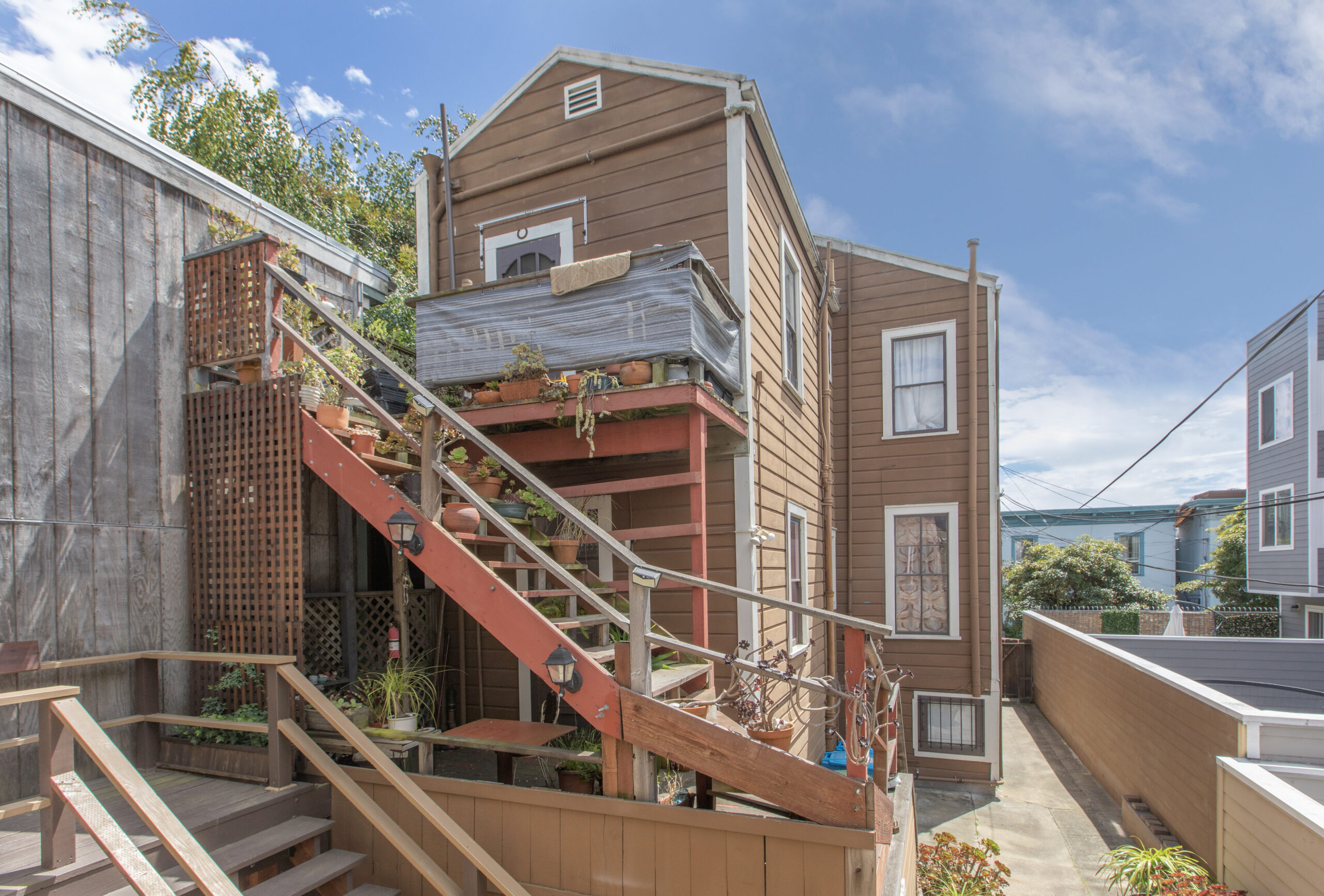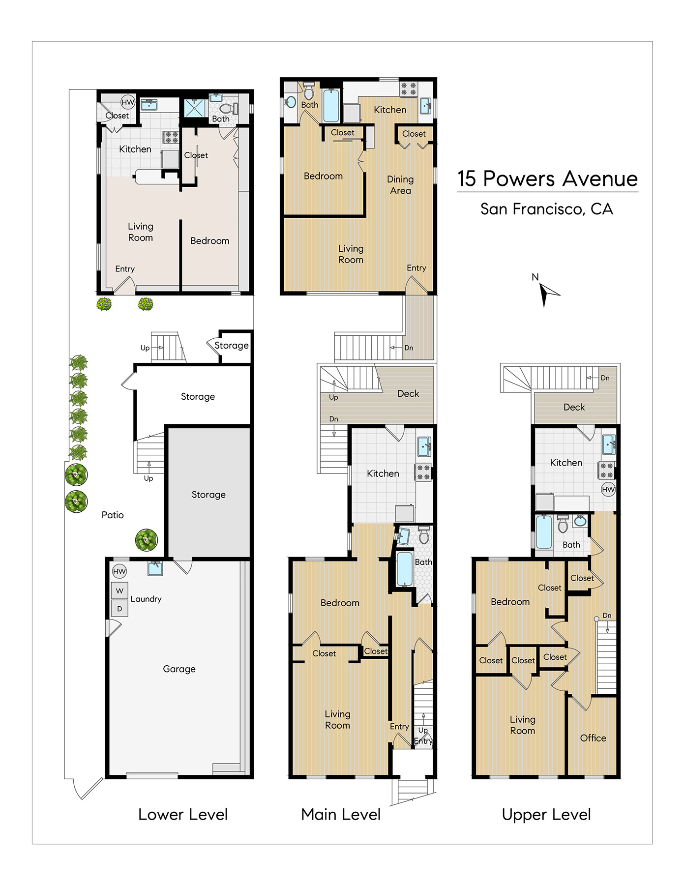 Sensational investment opportunity to own a semi-attached and fully detached four-unit property with two separate buildings located on a tree lined street and a truly special Bernal Heights location! There is an updated unit that will be delivered vacant. The front building is semi-attached with Victorian/Edwardian detail and two spacious flats graced with plenty of natural light and views. The upper flat (15 1/2 Powers) has a flexible floor plan with a large living room with views, office space, bedroom, full bath, and kitchen that opens to the back deck. This unit has been used as a two bedroom by previous tenants. The lower flat (15 Powers) offers a similar floor plan with access to the deck. The rear building is fully detached with a studio (13 Powers), and an updated one-bedroom flat (15B Powers) that will be delivered vacant. The spacious garage adds the final touches with plenty of room for storage. Do not miss this wonderful property that is close to shopping, restaurants, cafes, playgrounds, shuttles, public transportation, HWY 101/280 and more!