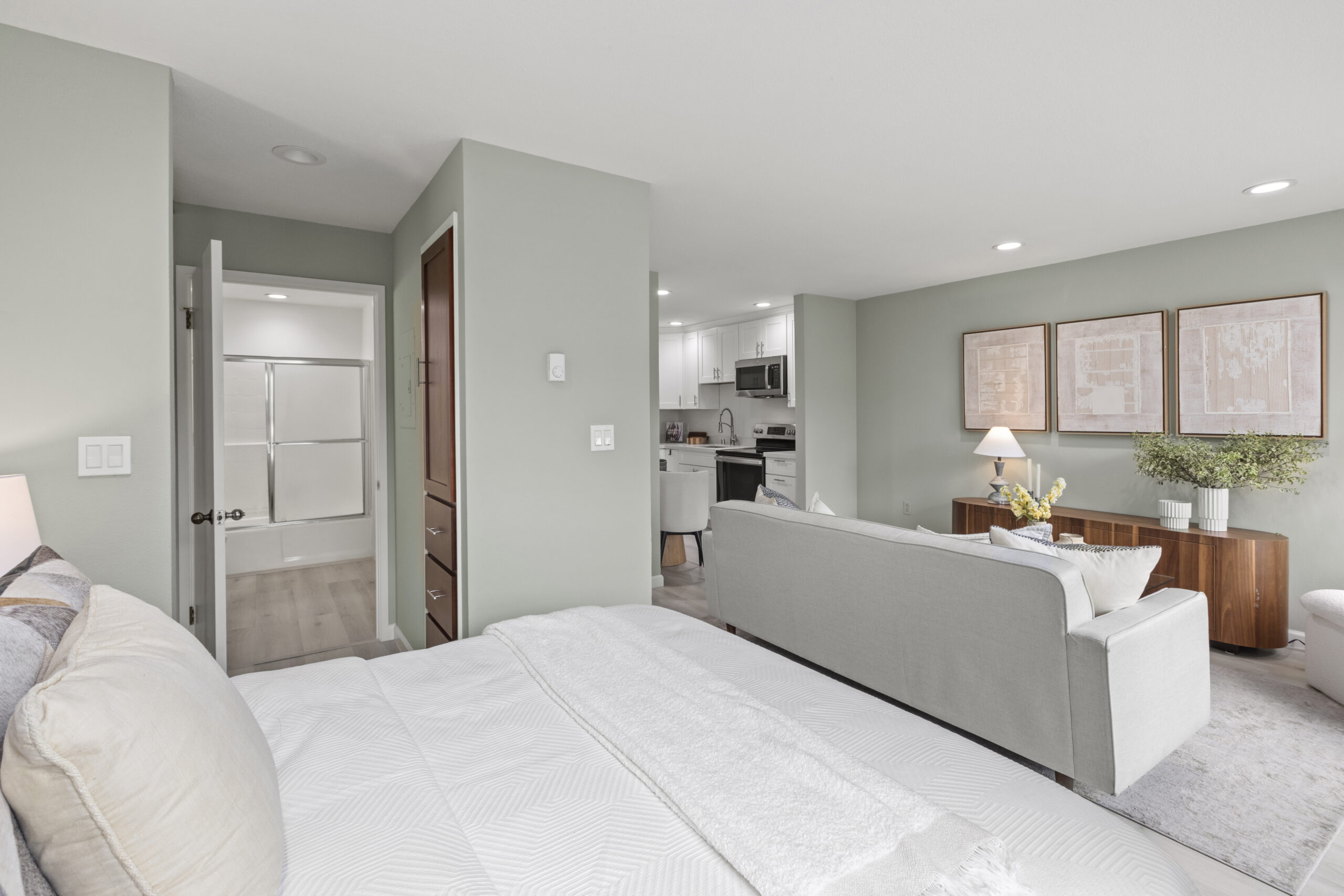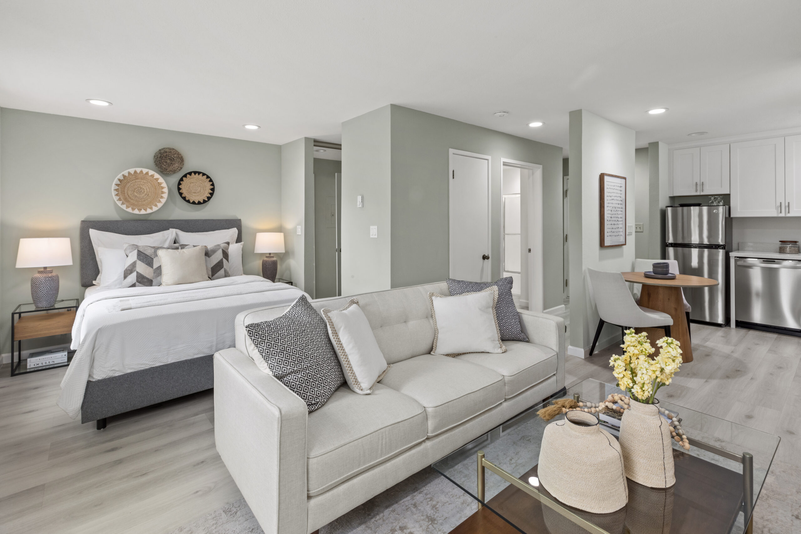 Luxurious and inviting updated studio ideal for full time city living, or the perfect pied-a-terre in a prime Potrero Hill location! The modern flat opens to a tastefully remodeled gourmet eat-in kitchen with shaker-style cabinets, quartz countertops, high-end appliances and an updated bathroom. The open and inviting living area with recently installed recessed lighting and engineered wood flooring overlooks the well-maintained, mature grounds and landscaping along with the swimming pool and jacuzzi. This elevator building offers a 21st century equipped gym, hot tub, swimming pool, clubhouse, outdoor BBQ, laundry, parking, and too many other amenities to list. Do not miss this special flat that is close to world class dining and shops on 18th and 20th Street, parks, playgrounds, public transportation, HWY 101/280 and more!