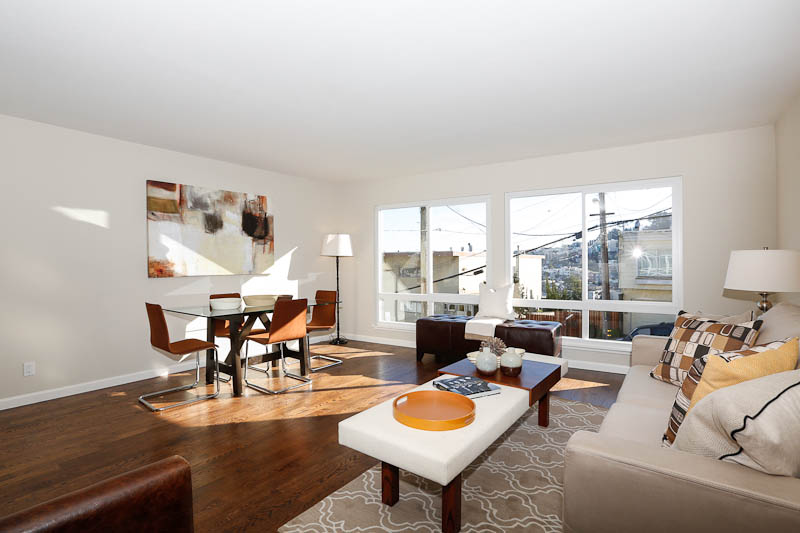 Spectacular and fully remodeled vacant two unit building with amazing San Francisco views in a fantastic Corona Heights location! This building has been tastefully updated with contemporary finishes and attention to detail. Both units are graced with gorgeous wood floors that are flooded with natural light, two spacious bedrooms, updated bathrooms and kitchens with high-end appliances. The living rooms have views from both levels and experience a comfortable open floor plan, along with two bedrooms that overlook the sun drenched garden.There is a huge garage with a separate laundry area and plenty of room for storage. A large and bright bonus studio with separate access completes this wonderful building. Don’t miss this wonderful property that has too many upgrades to list and is close to shopping, restaurants, cafes, playgrounds, public transportation, HWY 101 & 280! Sold W/ multiple offers $230,000 over asking!