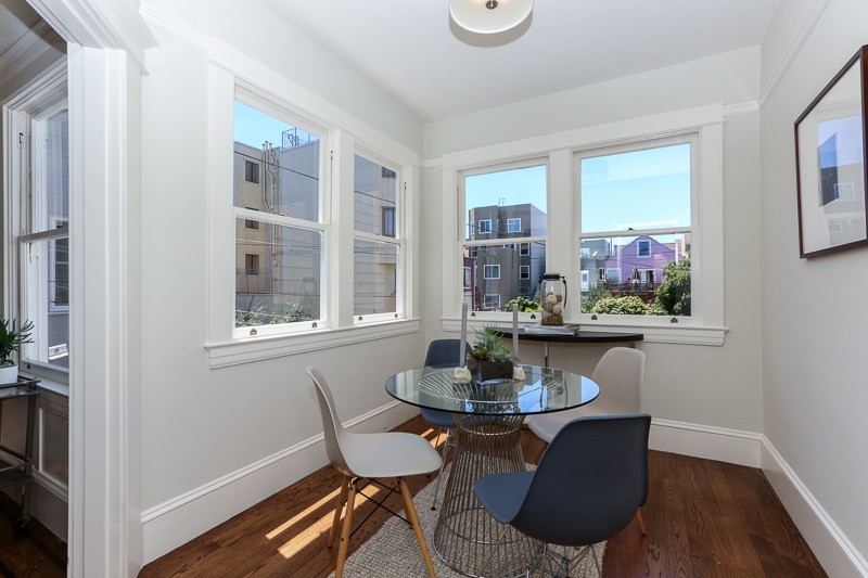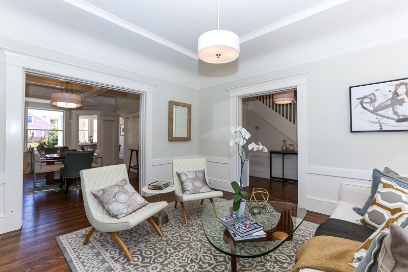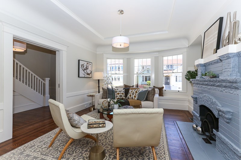 Grand and spectacular updated Edwardian home in a prime Central Richmond location! The home opens to a formal entryway, gorgeous wood floors, formal living room with fireplace, a festive dining room with box beam ceilings, and a breakfast room which overlooks the large, flat backyard/garden. A large open kitchen and a 1/4 bath finish the first level. The upper level has two large bedrooms and a full bath. There is a large garage with interior access, plenty of room for storage, possible expansion potential, and laundry area that complete this special home. Don’t miss this incredible property, which has too many upgrades to list, that is close to shopping, restaurants, Golden Gate Park, cafes, public transportation, playgrounds, and more! Just sold for $366k over the asking price!